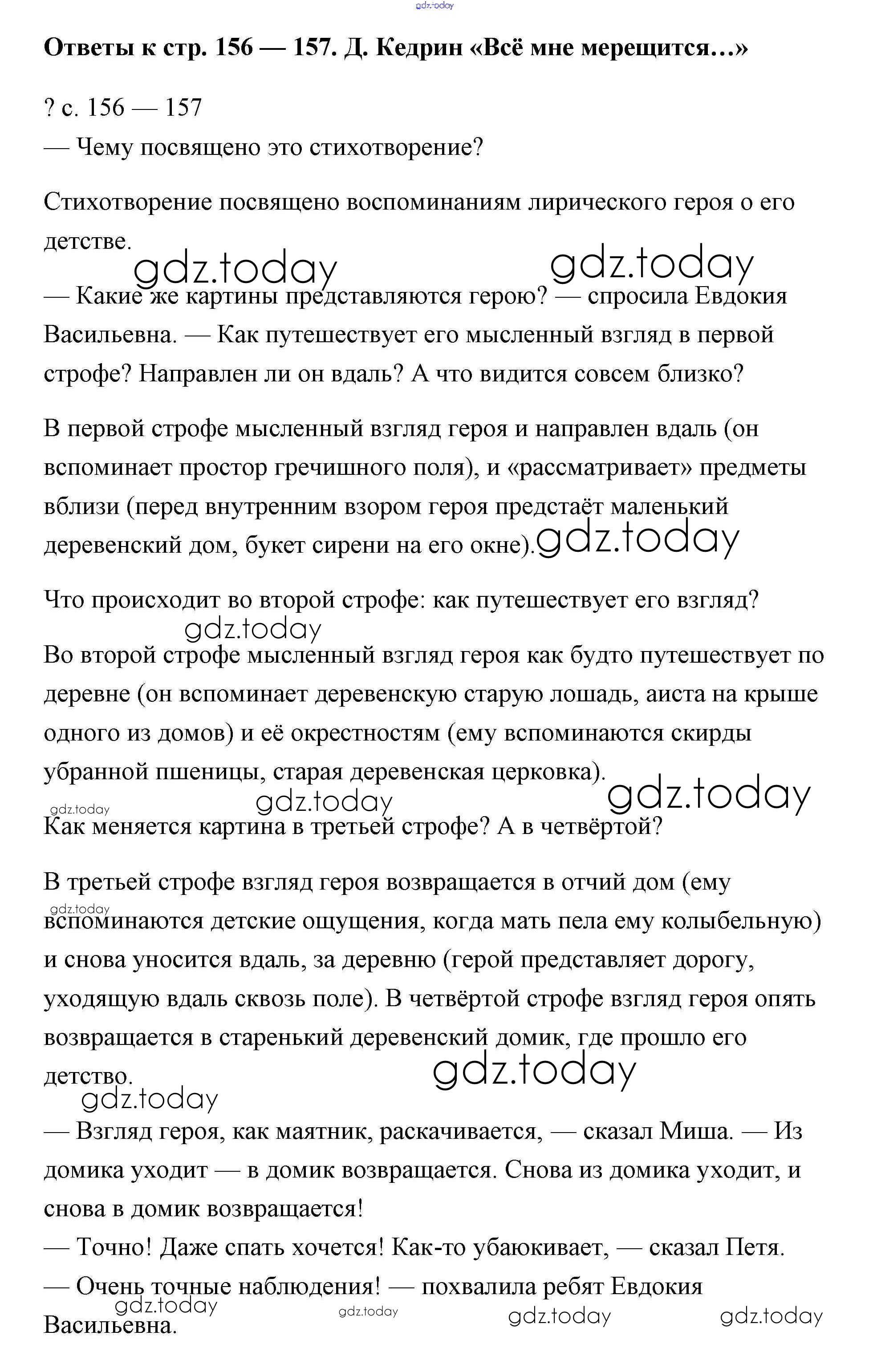 На страницах сайта gdz.today вы найдете учебный и вспомогательный материал, направленный на улучшения знаний школьной программы. ГДЗ - онлайн мир знаний Решение к части 2 (Страницы) 156-157 Учебнику по Литературному чтению для 4 класса Чуракова Академкнига Перспективная начальная школа 2017
