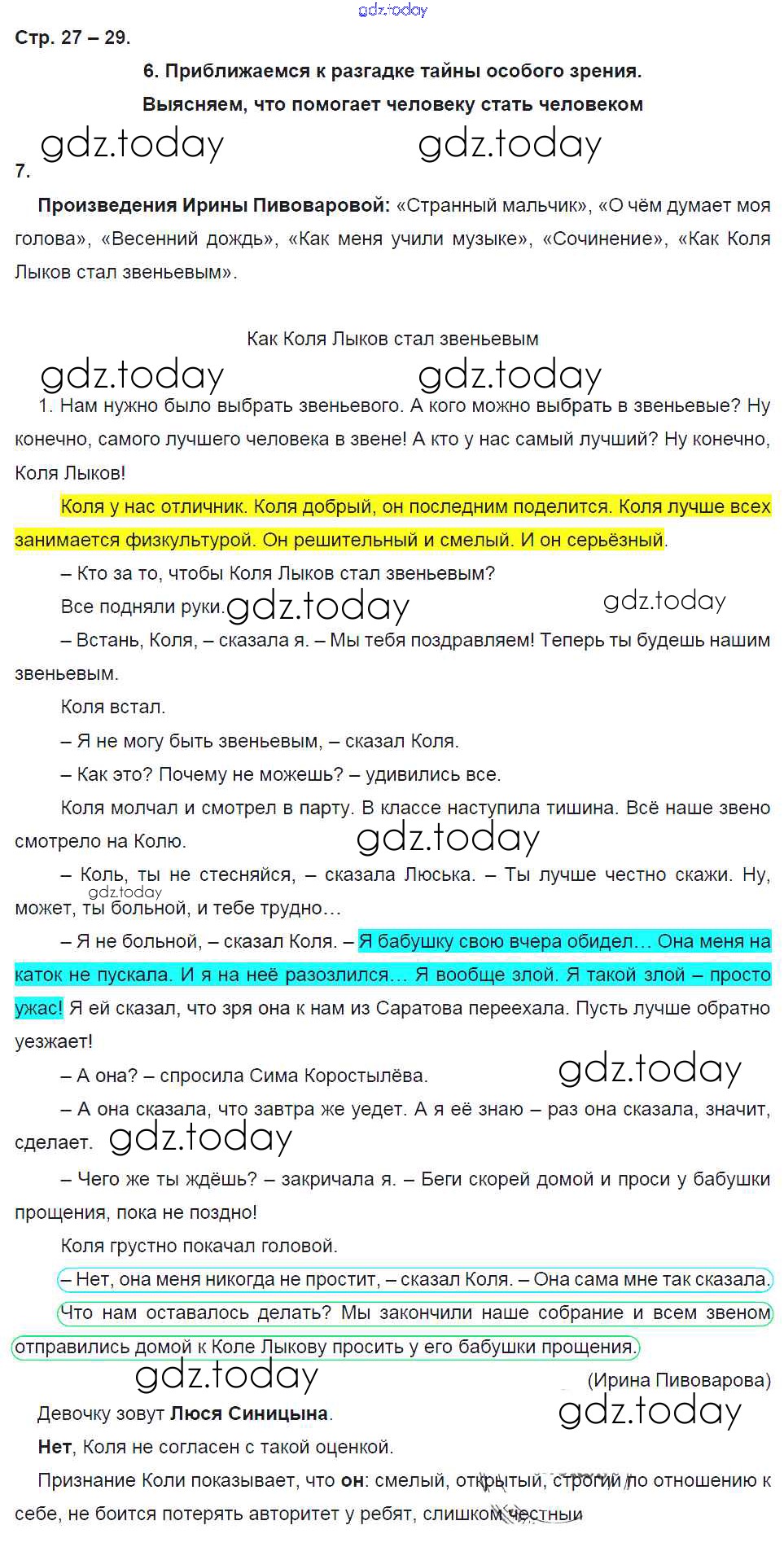 На страницах сайта gdz.today вы найдете учебный и вспомогательный материал, направленный на улучшения знаний школьной программы. ГДЗ - онлайн мир знаний Решение к части 2. Страницы тетради 29 Тетради для самостоятельной работы по Литературному чтению для 4 класса Чуракова Академкнига УМК 2019
