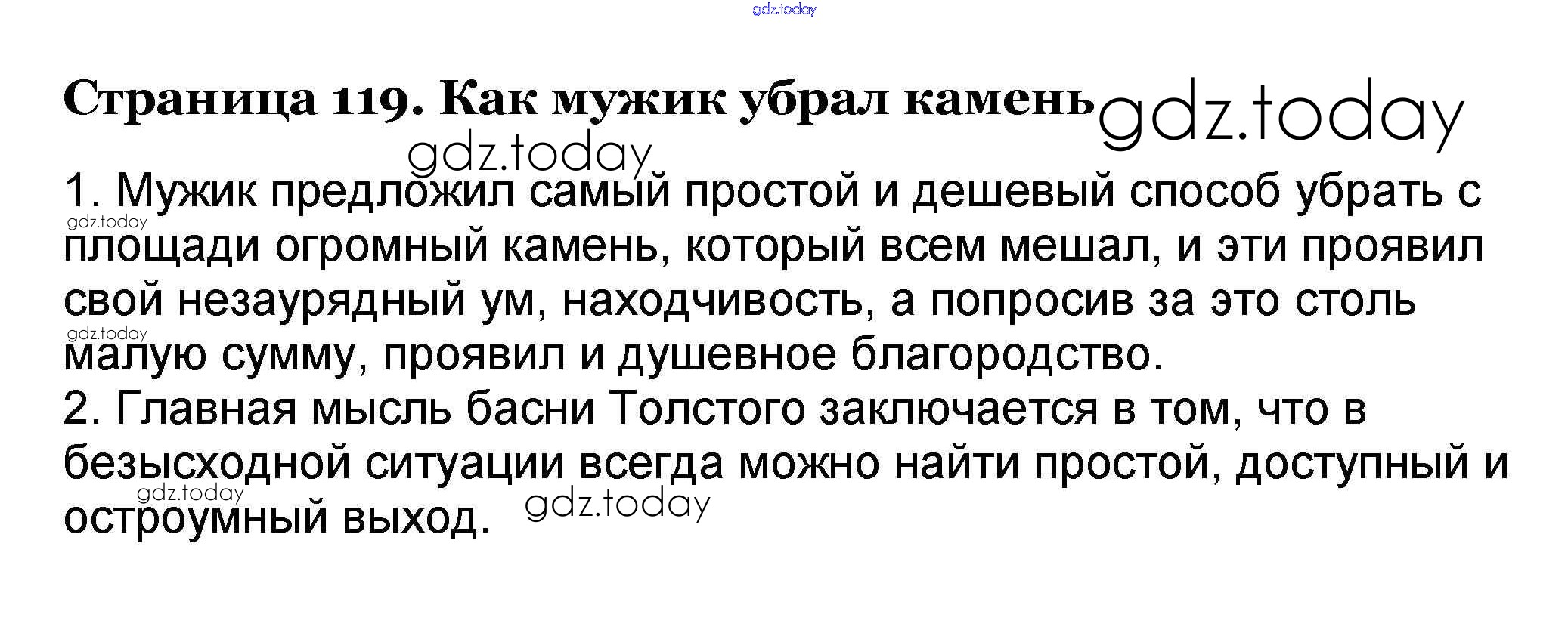 На страницах сайта gdz.today вы найдете учебный и вспомогательный материал, направленный на улучшения знаний школьной программы. ГДЗ - онлайн мир знаний Решение к части 1. Страницы 119 Учебнику по Литературному чтению для 4 класса Климанова, Горецкий Просвещение Школа России 2018