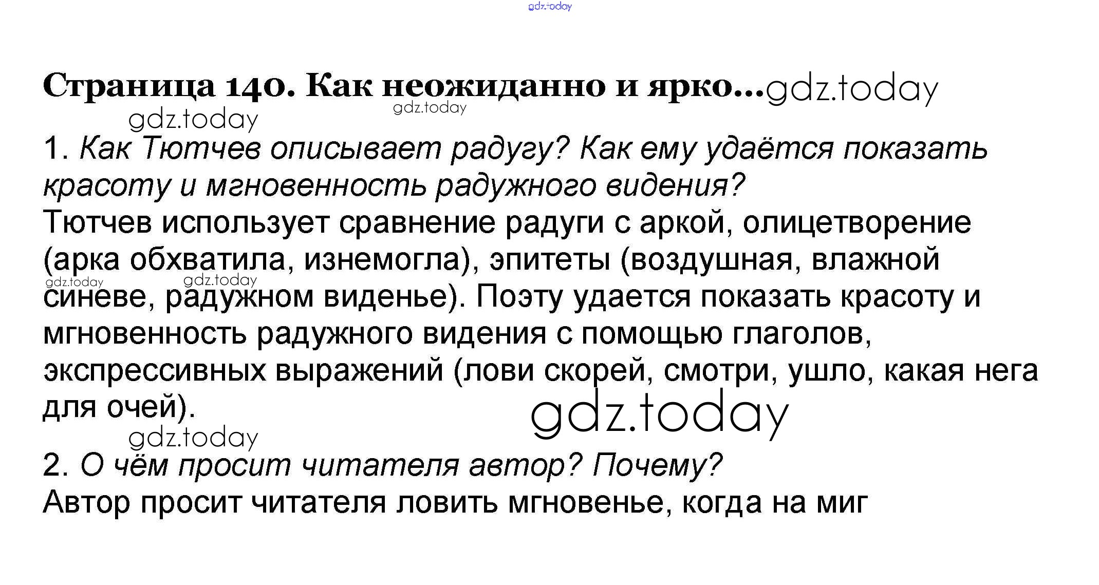 На страницах сайта gdz.today вы найдете учебный и вспомогательный материал, направленный на улучшения знаний школьной программы. ГДЗ - онлайн мир знаний Решение к части 1. Страницы 140 Учебнику по Литературному чтению для 4 класса Климанова, Горецкий Просвещение Школа России 2018