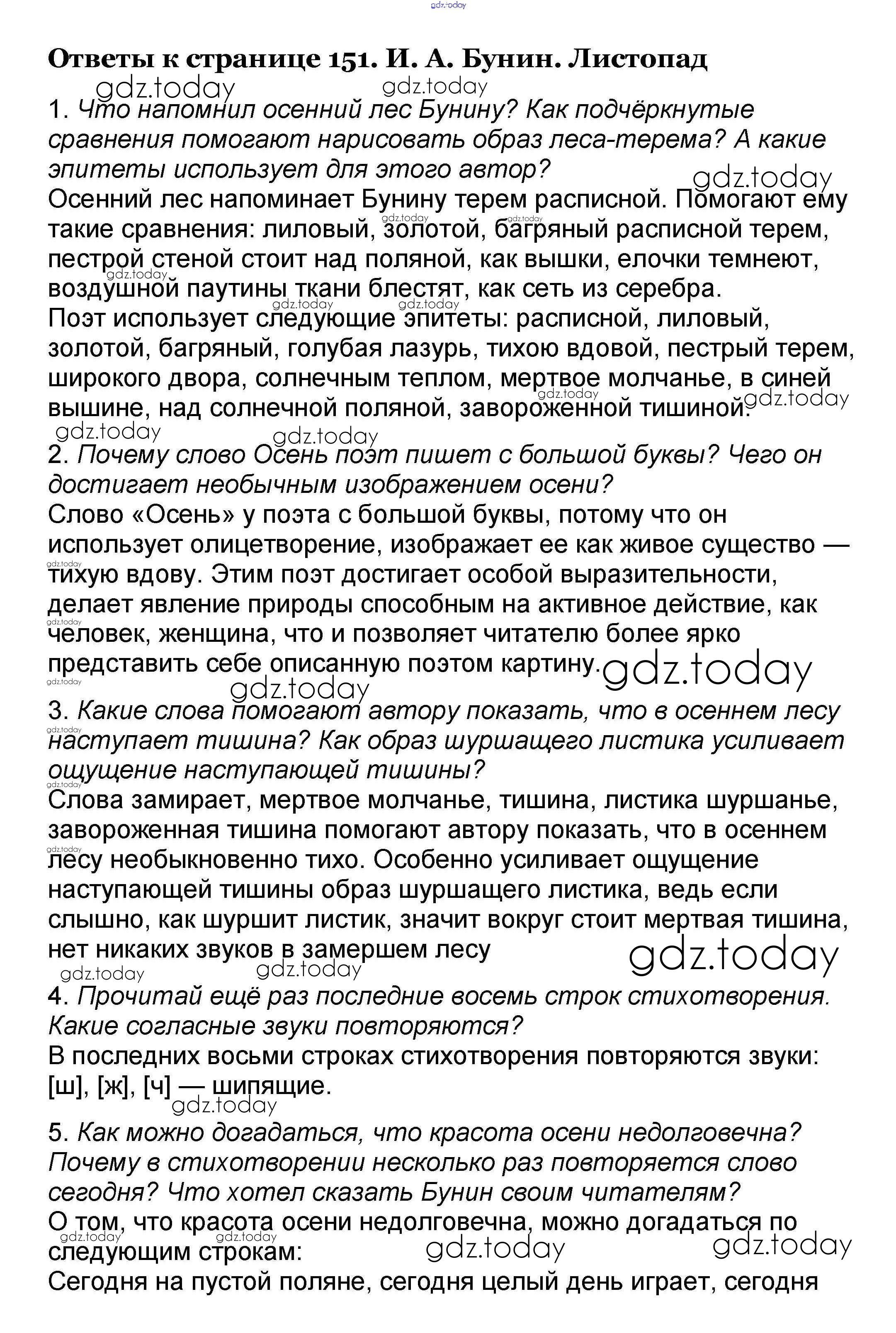 На страницах сайта gdz.today вы найдете учебный и вспомогательный материал, направленный на улучшения знаний школьной программы. ГДЗ - онлайн мир знаний Решение к части 1. Страницы 151 Учебнику по Литературному чтению для 4 класса Климанова, Горецкий Просвещение Школа России 2018