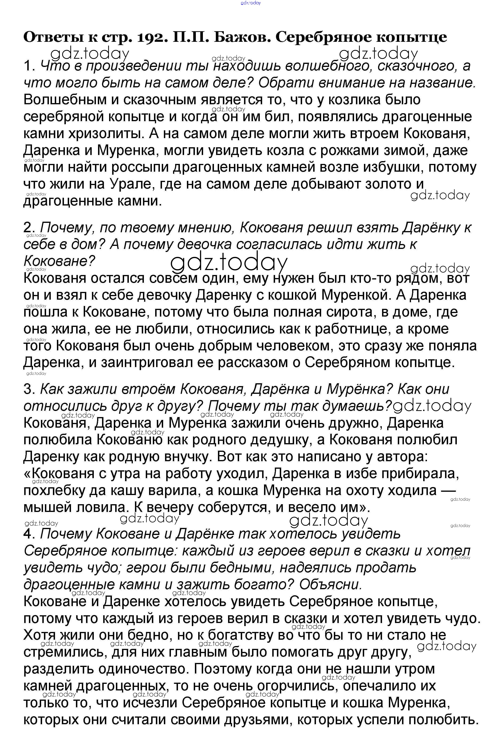 На страницах сайта gdz.today вы найдете учебный и вспомогательный материал, направленный на улучшения знаний школьной программы. ГДЗ - онлайн мир знаний Решение к части 1. Страницы  192 Учебнику по Литературному чтению для 4 класса Климанова, Горецкий  Просвещение Школа России 2018
