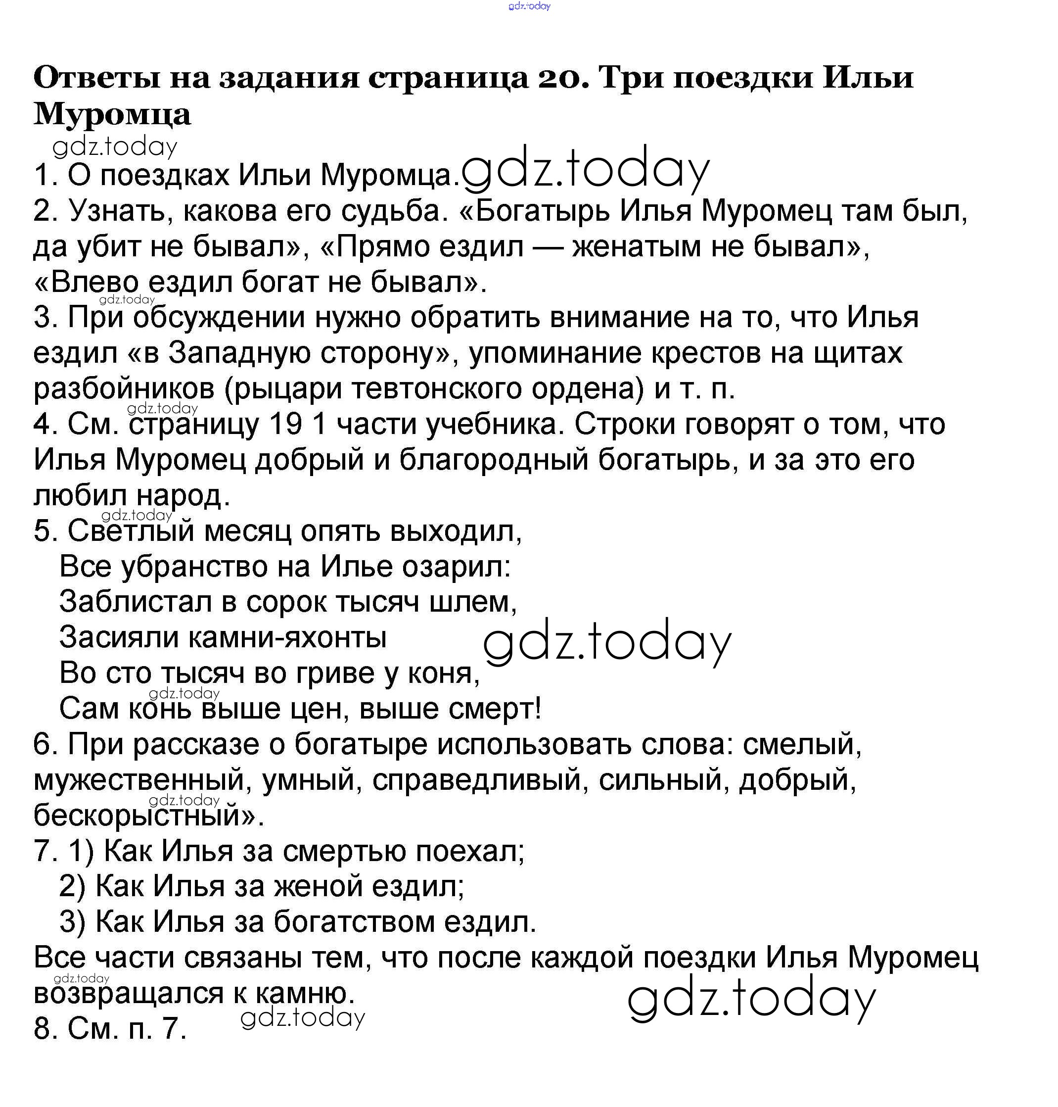 На страницах сайта gdz.today вы найдете учебный и вспомогательный материал, направленный на улучшения знаний школьной программы. ГДЗ - онлайн мир знаний Решение к части 1. Страницы 20 Учебнику по Литературному чтению для 4 класса Климанова, Горецкий Просвещение Школа России 2018