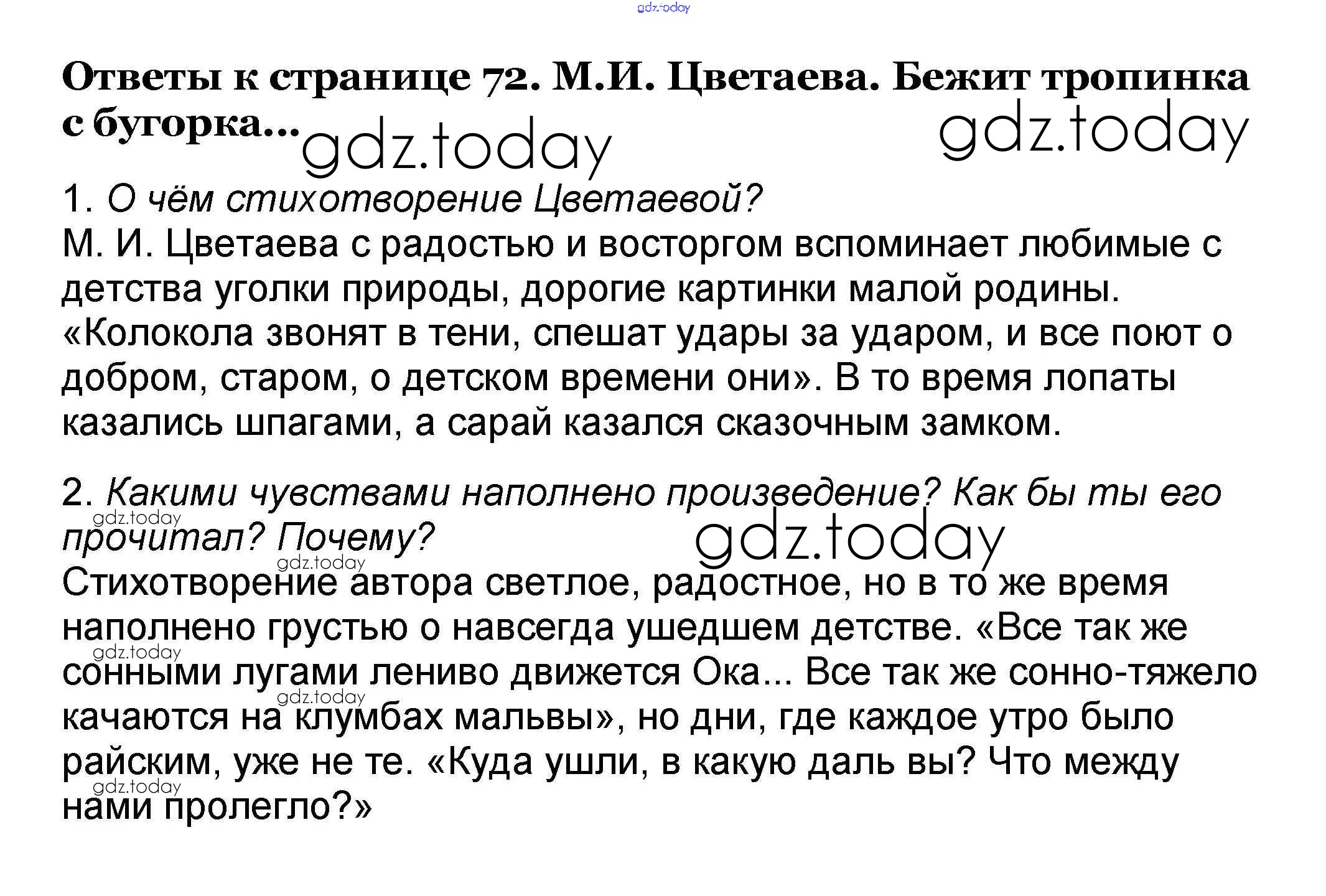 На страницах сайта gdz.today вы найдете учебный и вспомогательный материал, направленный на улучшения знаний школьной программы. ГДЗ - онлайн мир знаний Решение к части 2. Страницы 72 Учебнику по Литературному чтению для 4 класса Климанова, Горецкий Просвещение Школа России 2018