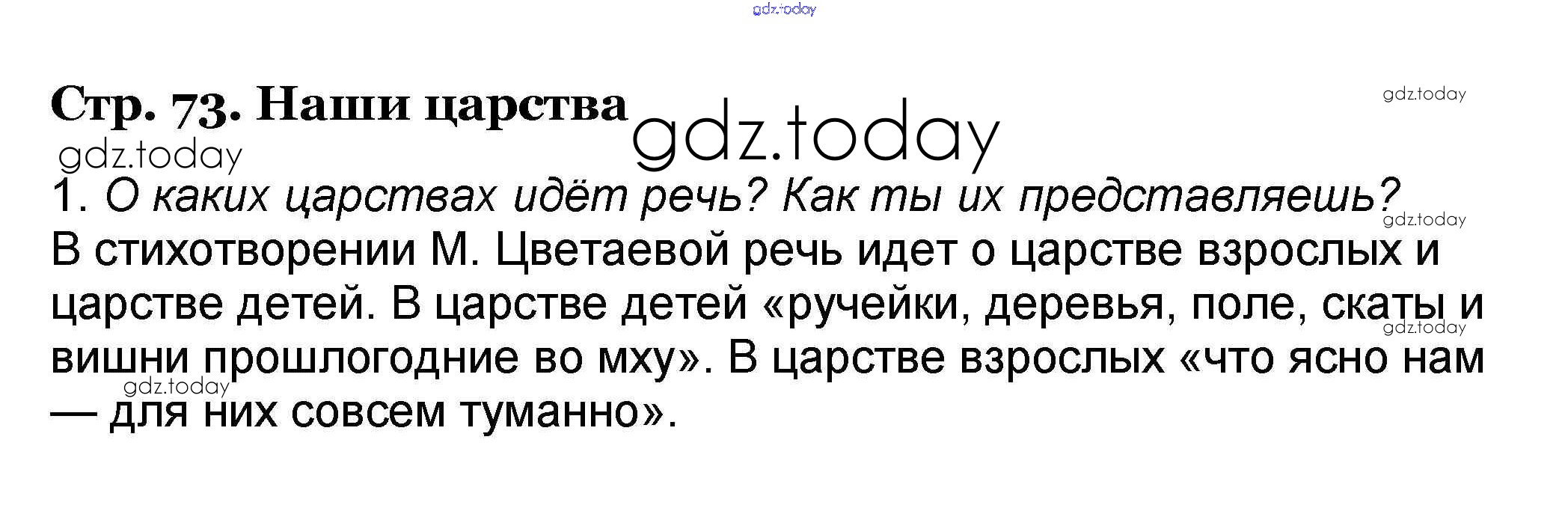 На страницах сайта gdz.today вы найдете учебный и вспомогательный материал, направленный на улучшения знаний школьной программы. ГДЗ - онлайн мир знаний Решение к части 2. Страницы 73 Учебнику по Литературному чтению для 4 класса Климанова, Горецкий Просвещение Школа России 2018