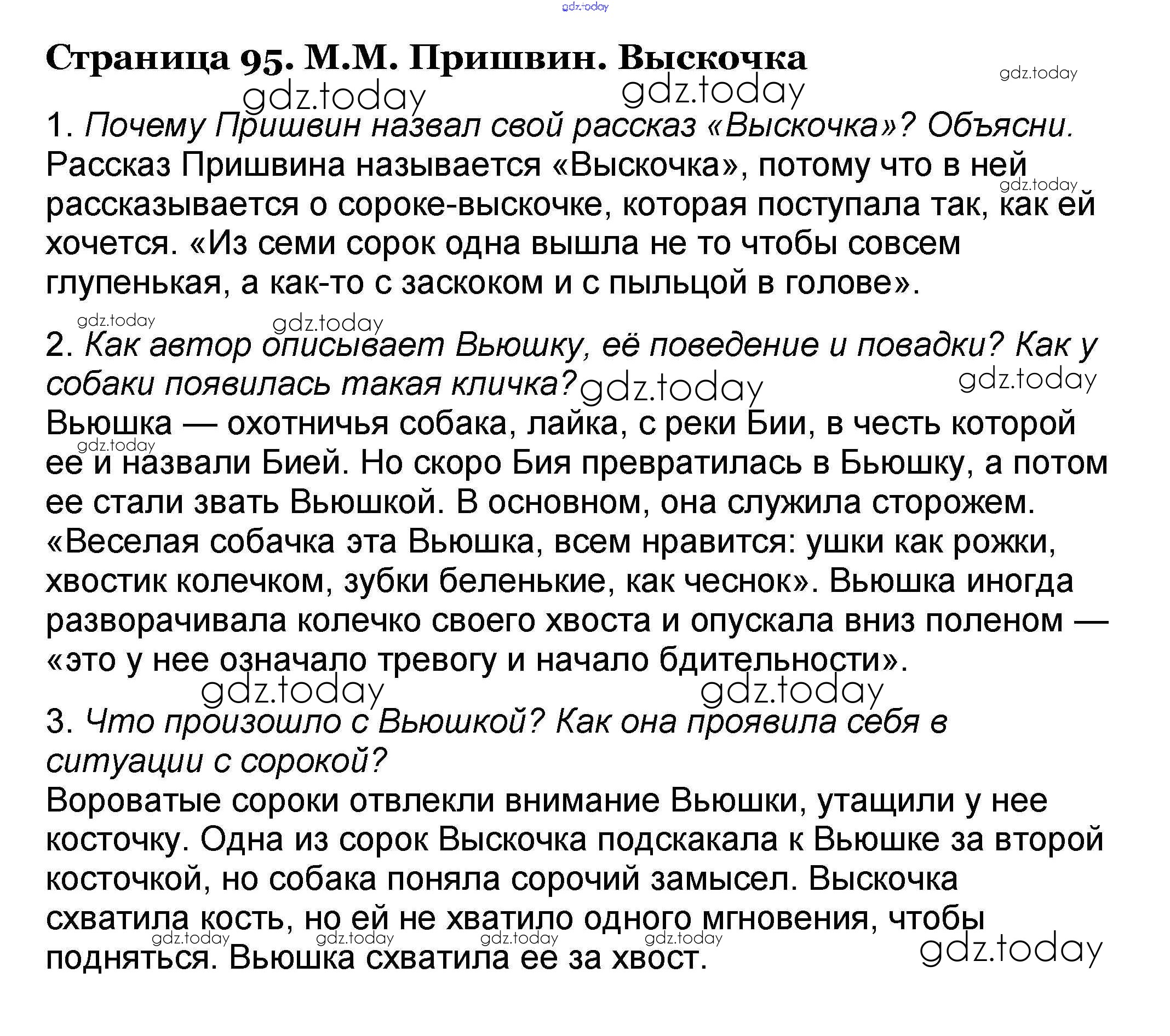 На страницах сайта gdz.today вы найдете учебный и вспомогательный материал, направленный на улучшения знаний школьной программы. ГДЗ - онлайн мир знаний Решение к части 2. Страницы 95 Учебнику по Литературному чтению для 4 класса Климанова, Горецкий Просвещение Школа России 2018