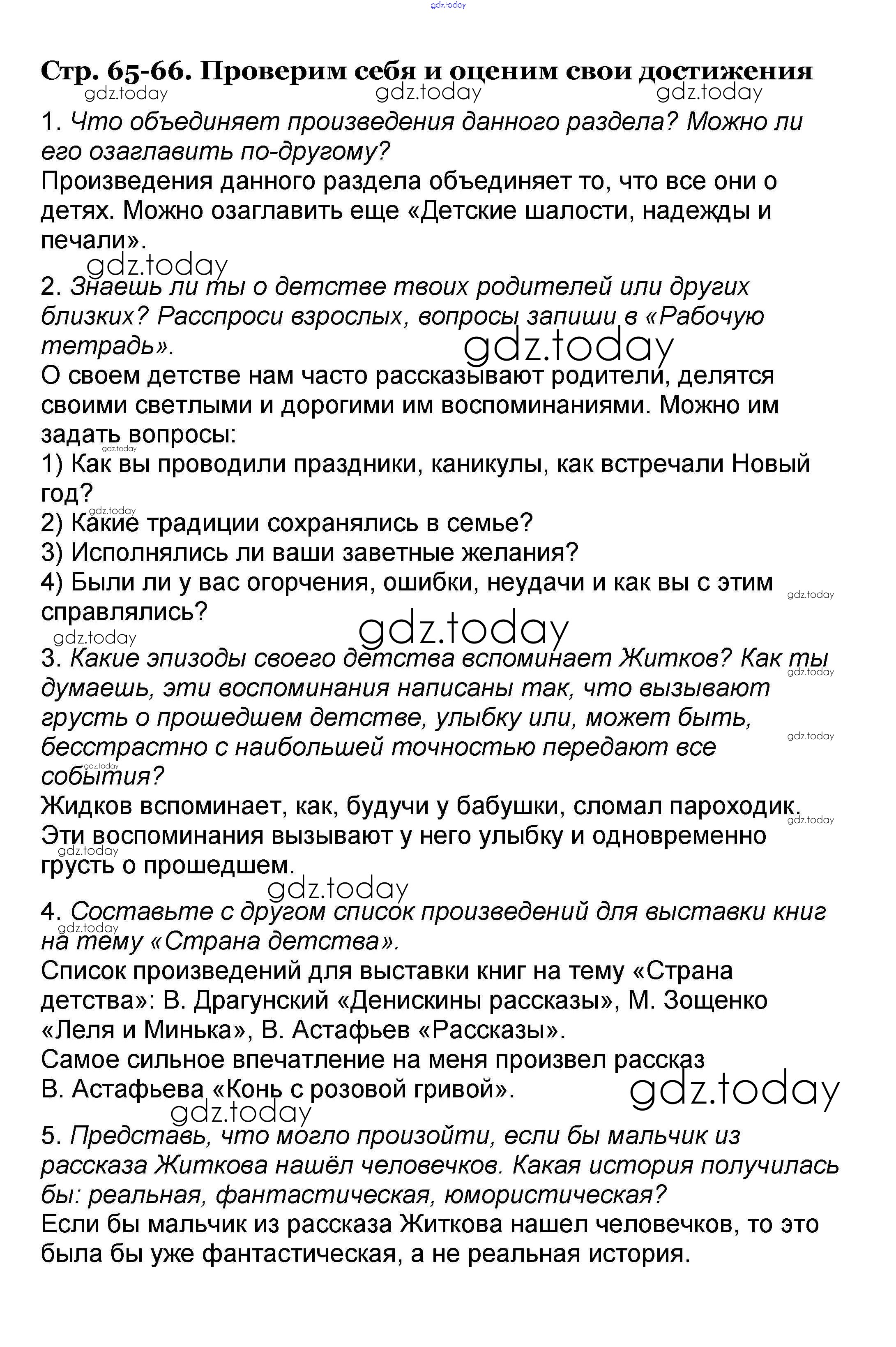 На страницах сайта gdz.today вы найдете учебный и вспомогательный материал, направленный на улучшения знаний школьной программы. ГДЗ - онлайн мир знаний Решение к части 2. Страницы 65-66 Учебнику по Литературному чтению для 4 класса Климанова, Горецкий Просвещение Школа России 2018