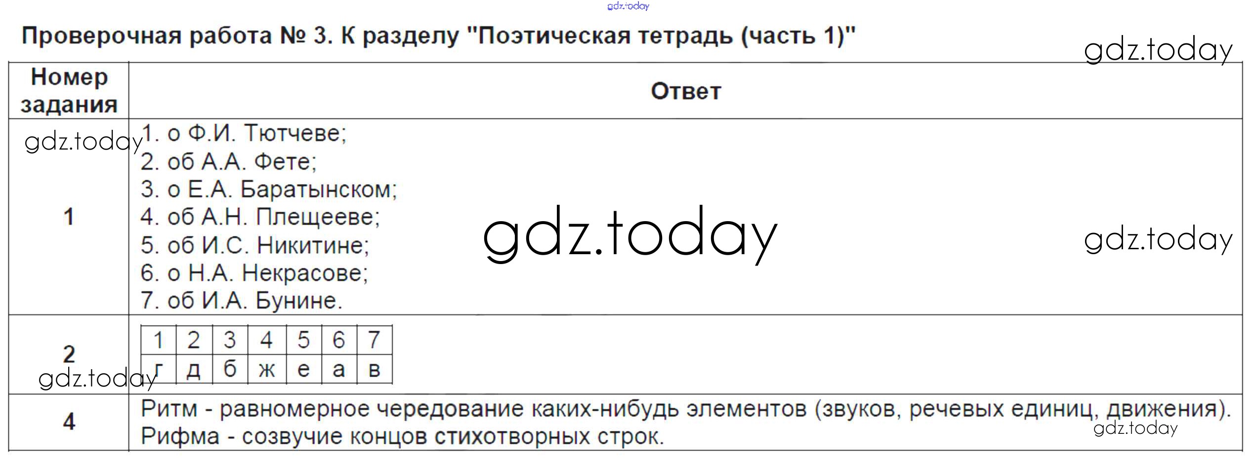 Ответы к Решение к проверочным работам ПР-3 Контрольно-измерительным материалам (КИМ) по Литературному чтению для 4 класса Кутявина ВАКО 2017