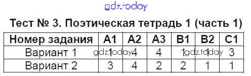 Ответы к Решение к тестам Тест №3. Поэтическая тетрадь 1 (часть 1) Контрольно-измерительным материалам (КИМ) по Литературному чтению для 4 класса Кутявина ВАКО 2017