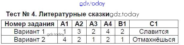 Ответы к Решение к тестам Тест №4. Делу время - потехе час Контрольно-измерительным материалам (КИМ) по Литературному чтению для 4 класса Кутявина ВАКО 2017