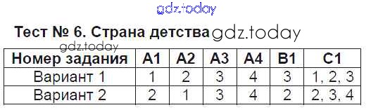 Ответы к Решение к тестам Тест №6. Страна детства Контрольно-измерительным материалам (КИМ) по Литературному чтению для 4 класса Кутявина ВАКО 2017