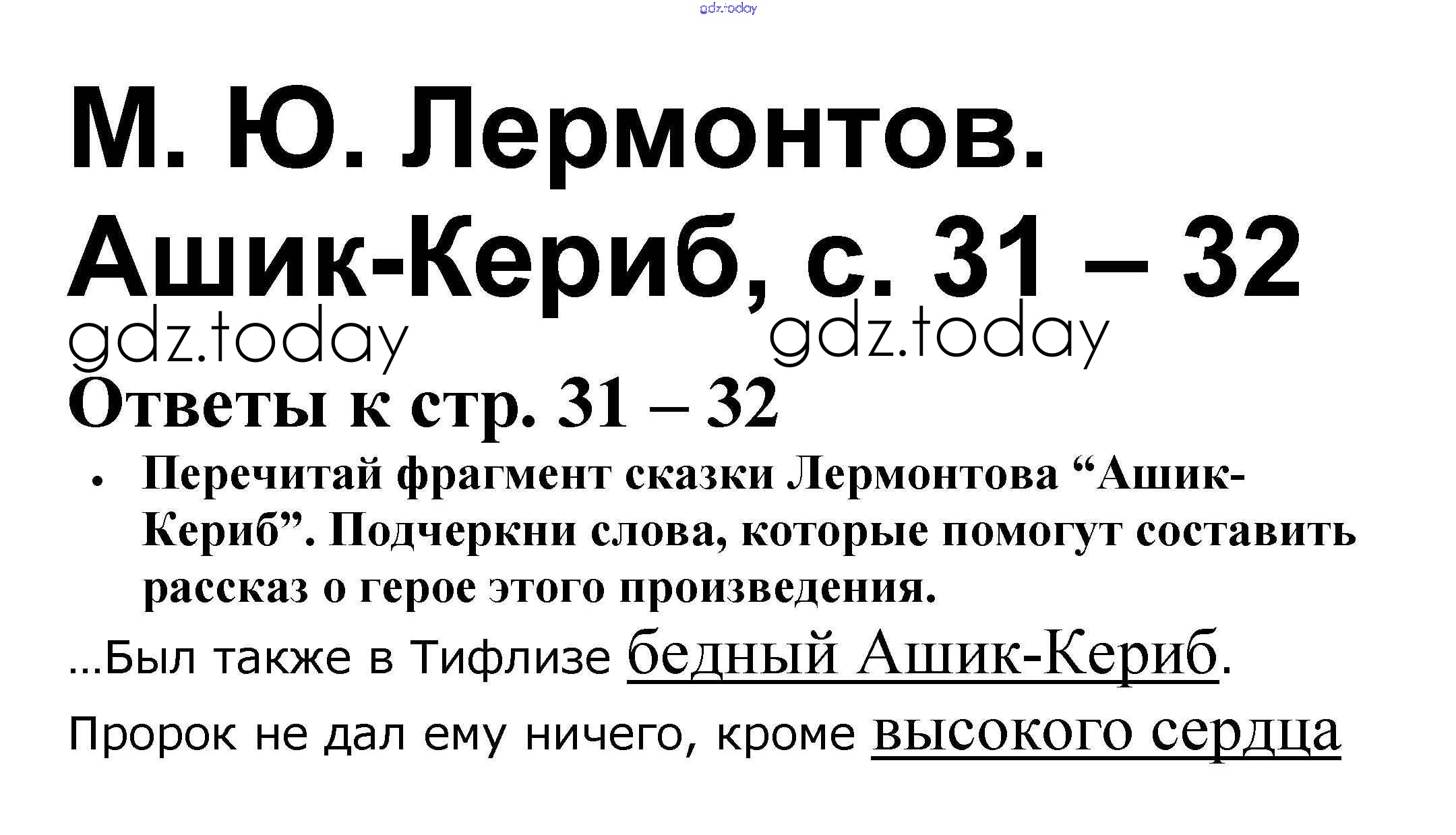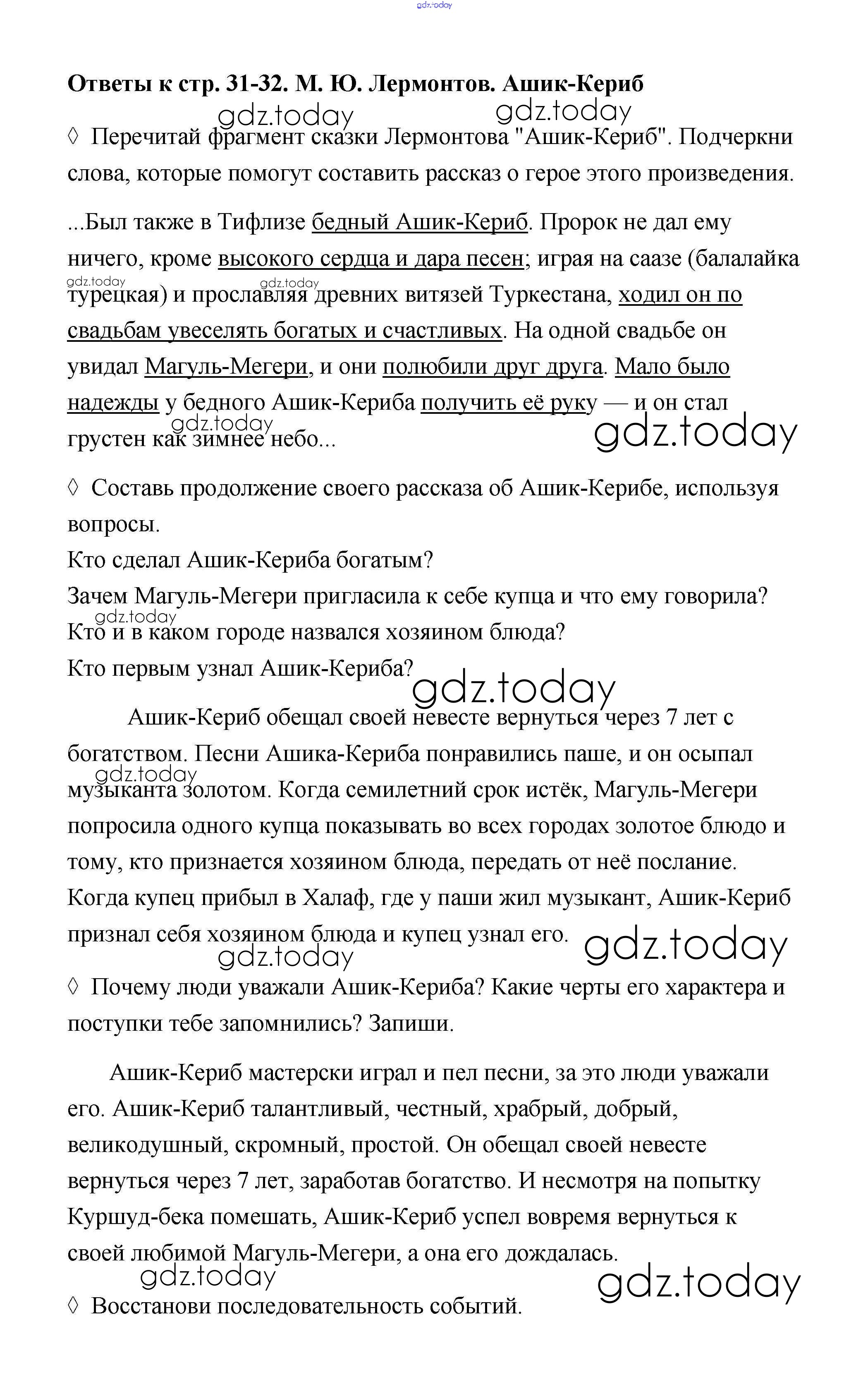 На страницах сайта gdz.today вы найдете учебный и вспомогательный материал, направленный на улучшения знаний школьной программы. ГДЗ - онлайн мир знаний Решение к страницам 31-32 Рабочей тетради по Литературному чтению для 4 класса Бойкина, Виноградская Просвещение Школа России 2016