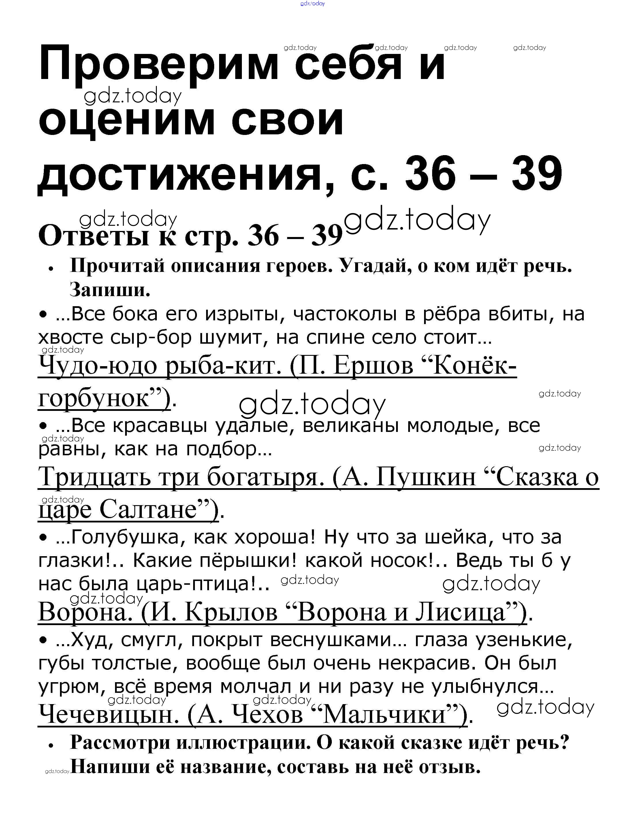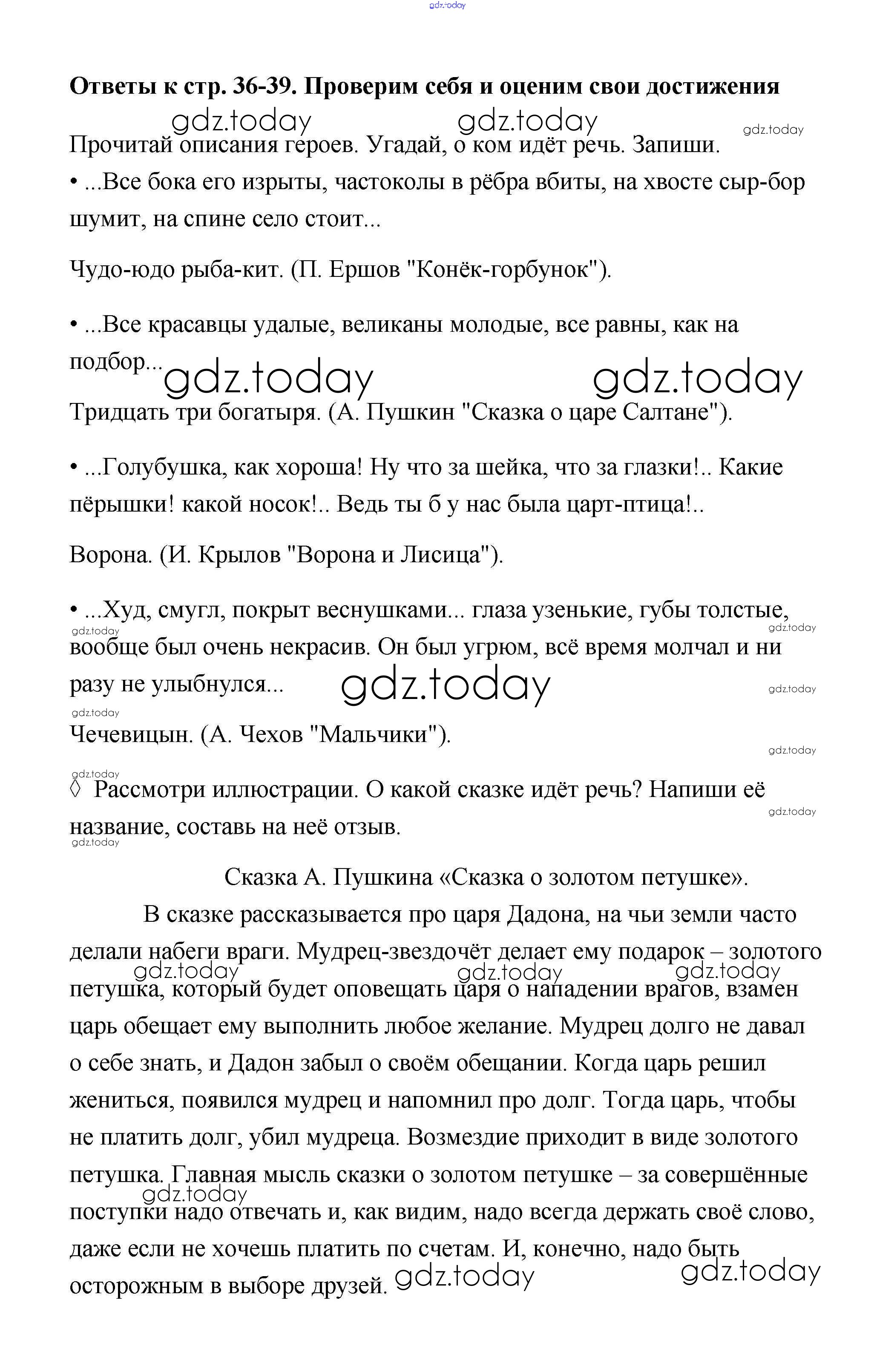 На страницах сайта gdz.today вы найдете учебный и вспомогательный материал, направленный на улучшения знаний школьной программы. ГДЗ - онлайн мир знаний Решение к страницам 36-39 Рабочей тетради по Литературному чтению для 4 класса Бойкина, Виноградская Просвещение Школа России 2016