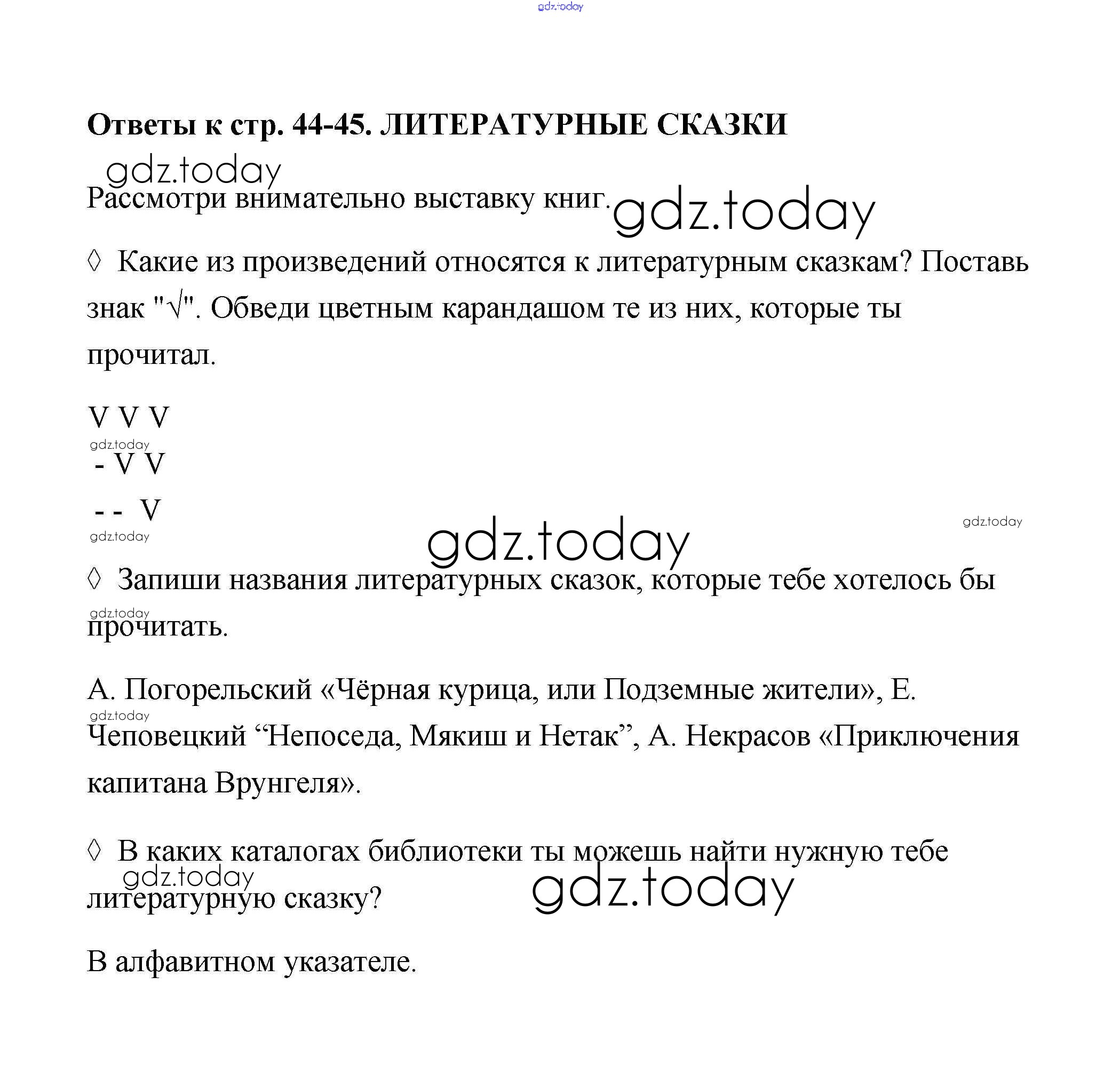 На страницах сайта gdz.today вы найдете учебный и вспомогательный материал, направленный на улучшения знаний школьной программы. ГДЗ - онлайн мир знаний Решение к страницам 44-45 Рабочей тетради по Литературному чтению для 4 класса Бойкина, Виноградская Просвещение Школа России 2016