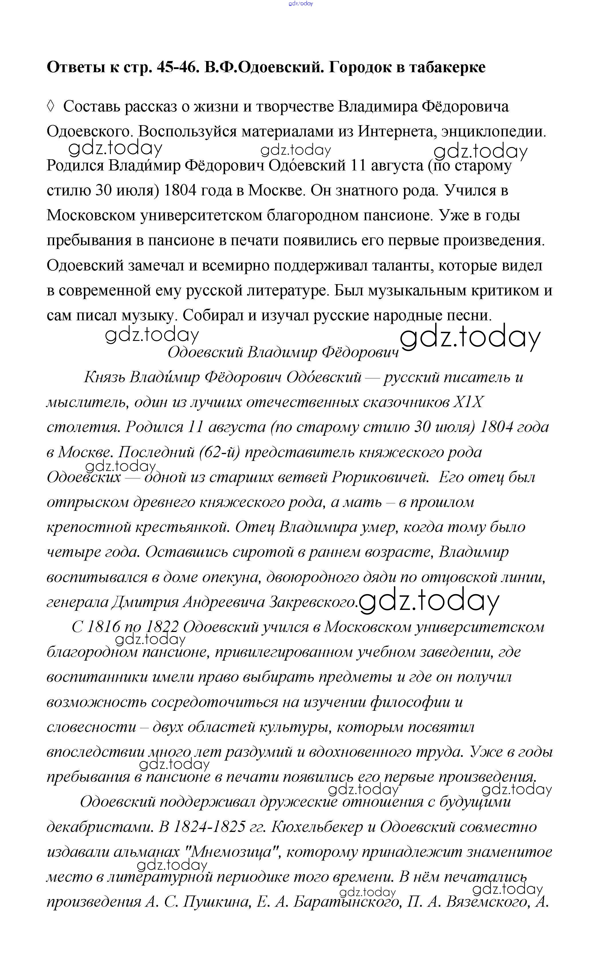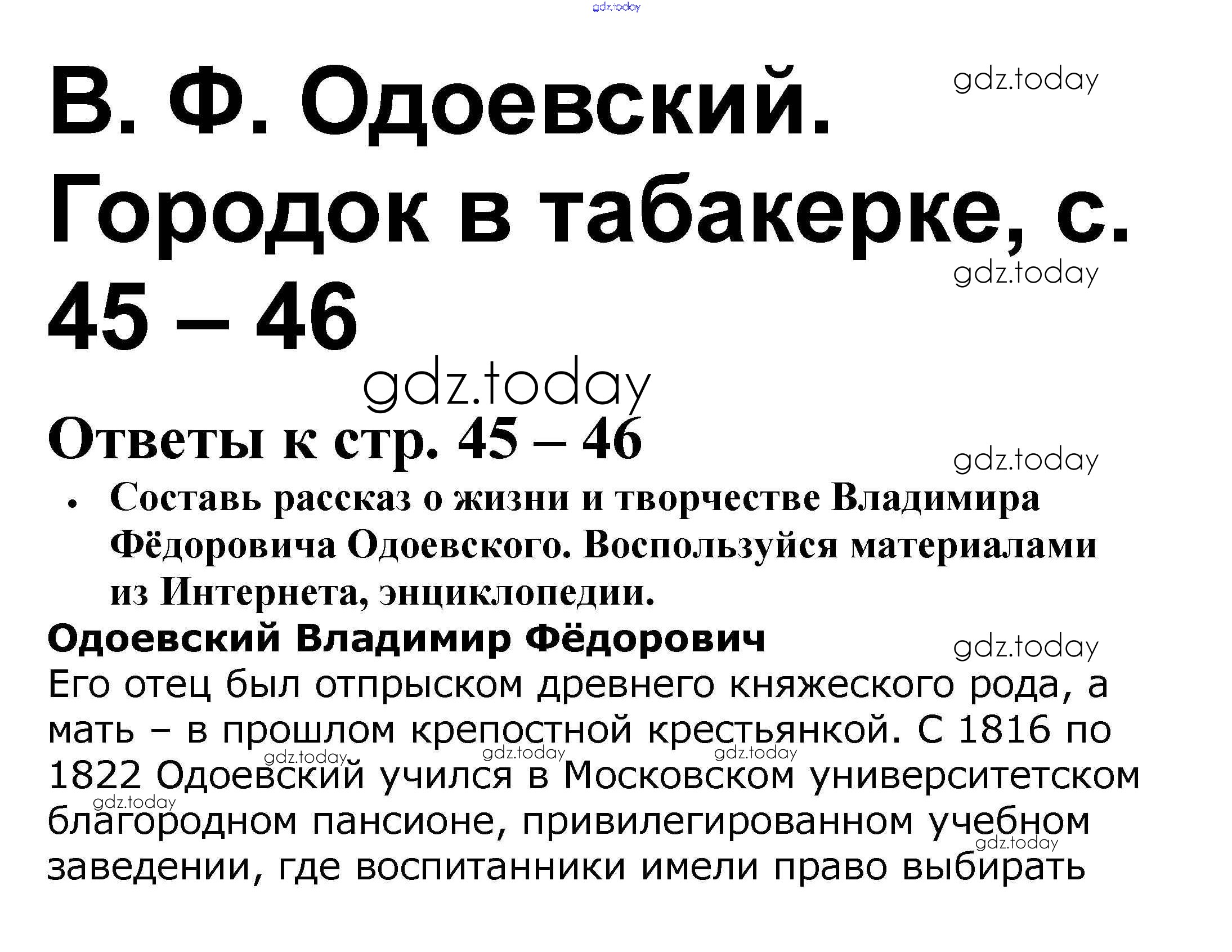 На страницах сайта gdz.today вы найдете учебный и вспомогательный материал, направленный на улучшения знаний школьной программы. ГДЗ - онлайн мир знаний Решение к страницам 45-46 Рабочей тетради по Литературному чтению для 4 класса Бойкина, Виноградская Просвещение Школа России 2016