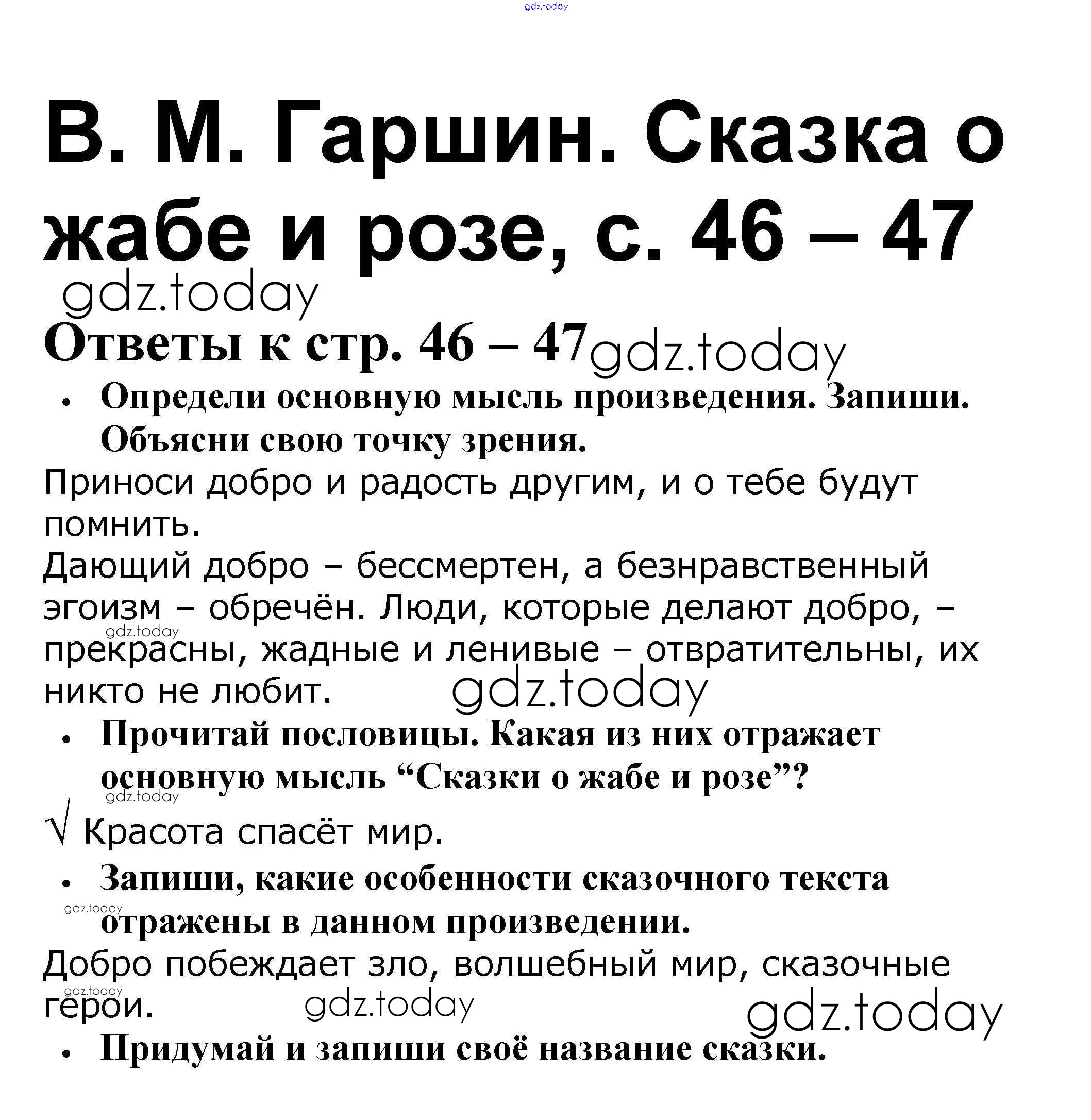 На страницах сайта gdz.today вы найдете учебный и вспомогательный материал, направленный на улучшения знаний школьной программы. ГДЗ - онлайн мир знаний Решение к страницам 46-47 Рабочей тетради по Литературному чтению для 4 класса Бойкина, Виноградская Просвещение Школа России 2016