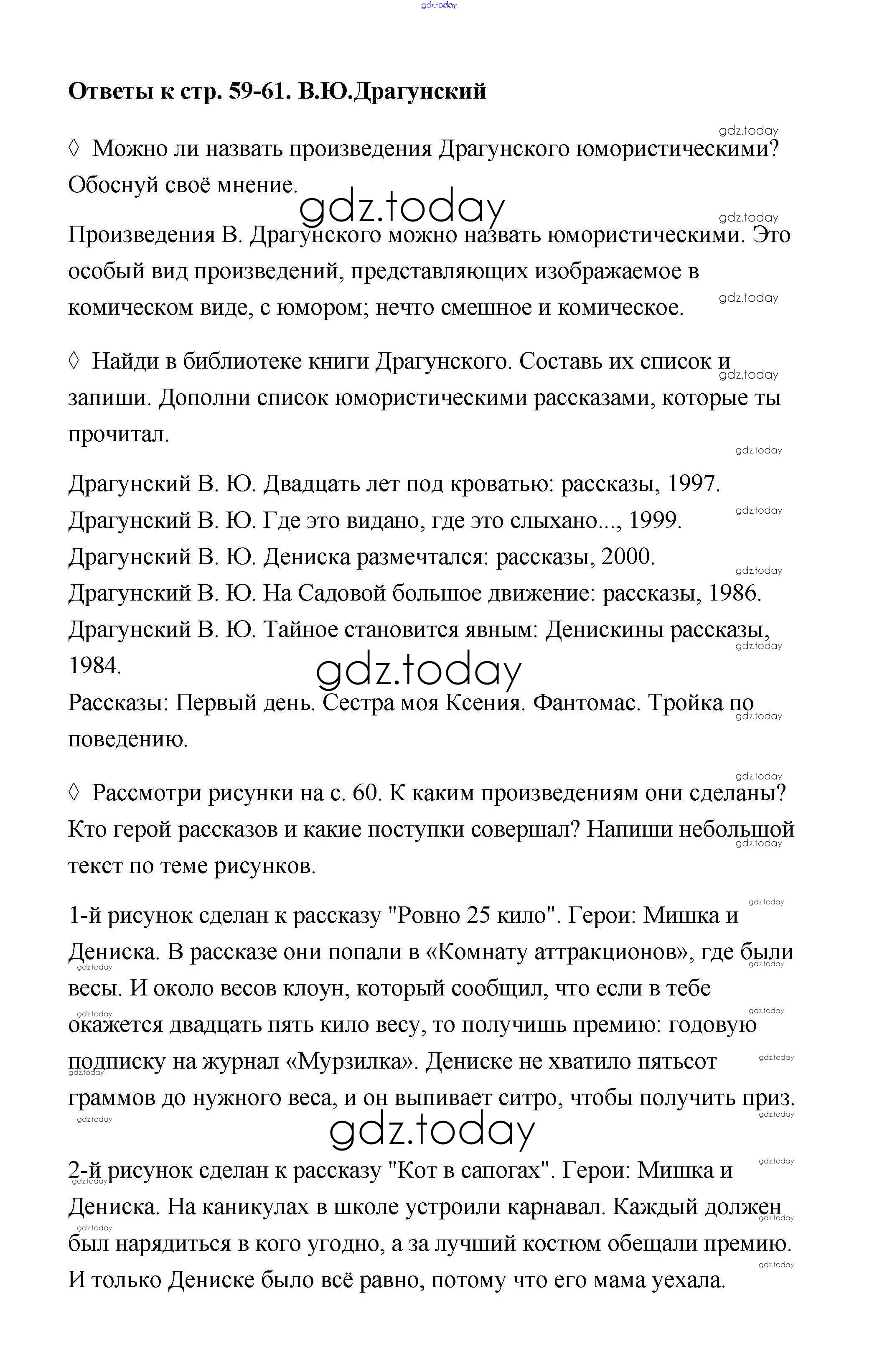 На страницах сайта gdz.today вы найдете учебный и вспомогательный материал, направленный на улучшения знаний школьной программы. ГДЗ - онлайн мир знаний Решение к страницам 59-61 Рабочей тетради по Литературному чтению для 4 класса Бойкина, Виноградская Просвещение Школа России 2016