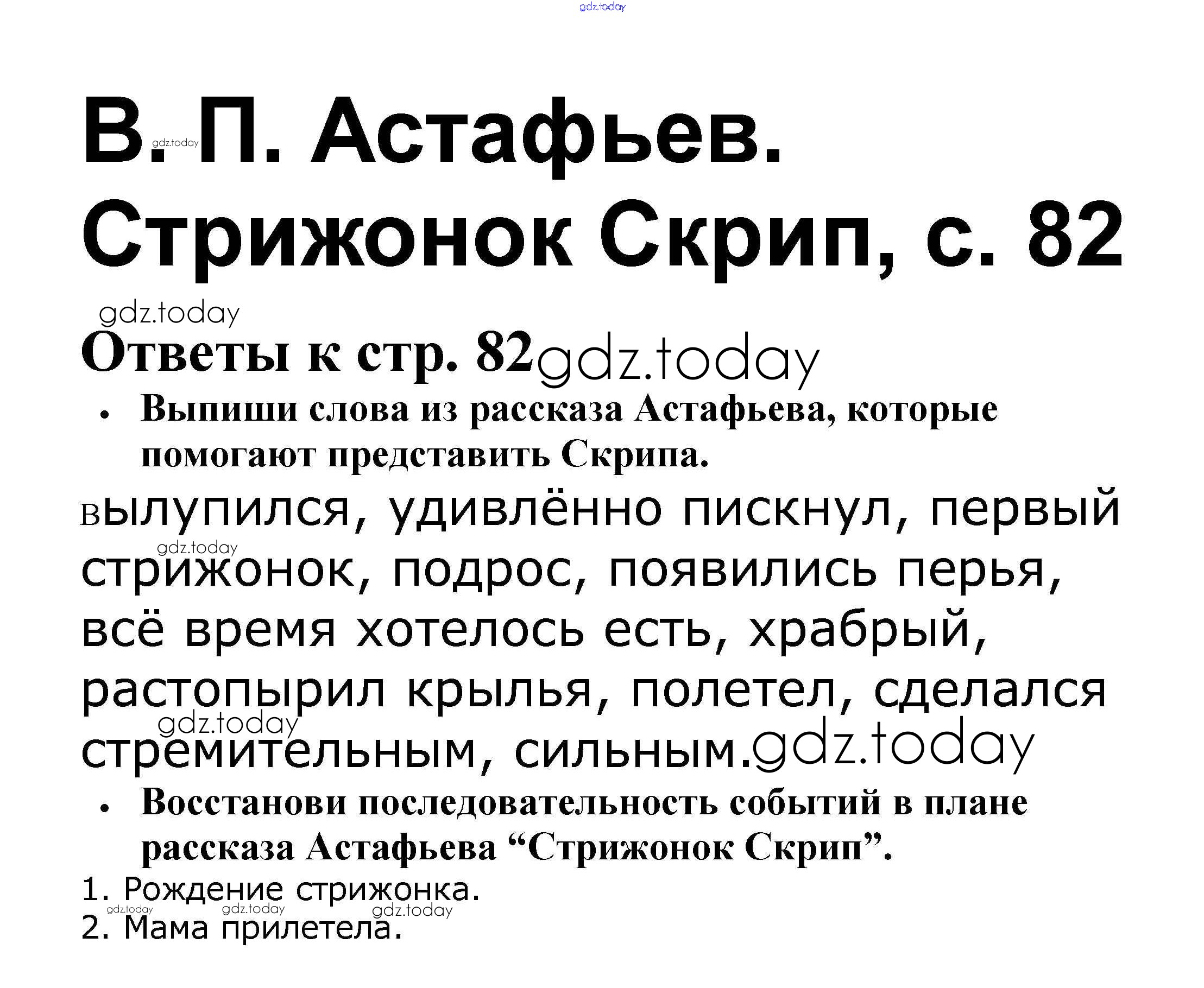 Ответы к Решение к страницам 82 Рабочей тетради по Литературному чтению для 4 класса Бойкина, Виноградская Просвещение Школа России 2016