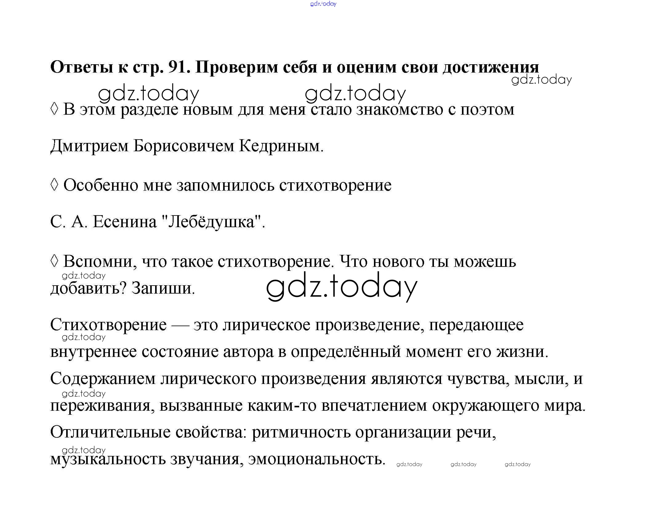 На страницах сайта gdz.today вы найдете учебный и вспомогательный материал, направленный на улучшения знаний школьной программы. ГДЗ - онлайн мир знаний Решение к страницам 91 Рабочей тетради по Литературному чтению для 4 класса Бойкина, Виноградская Просвещение Школа России 2016