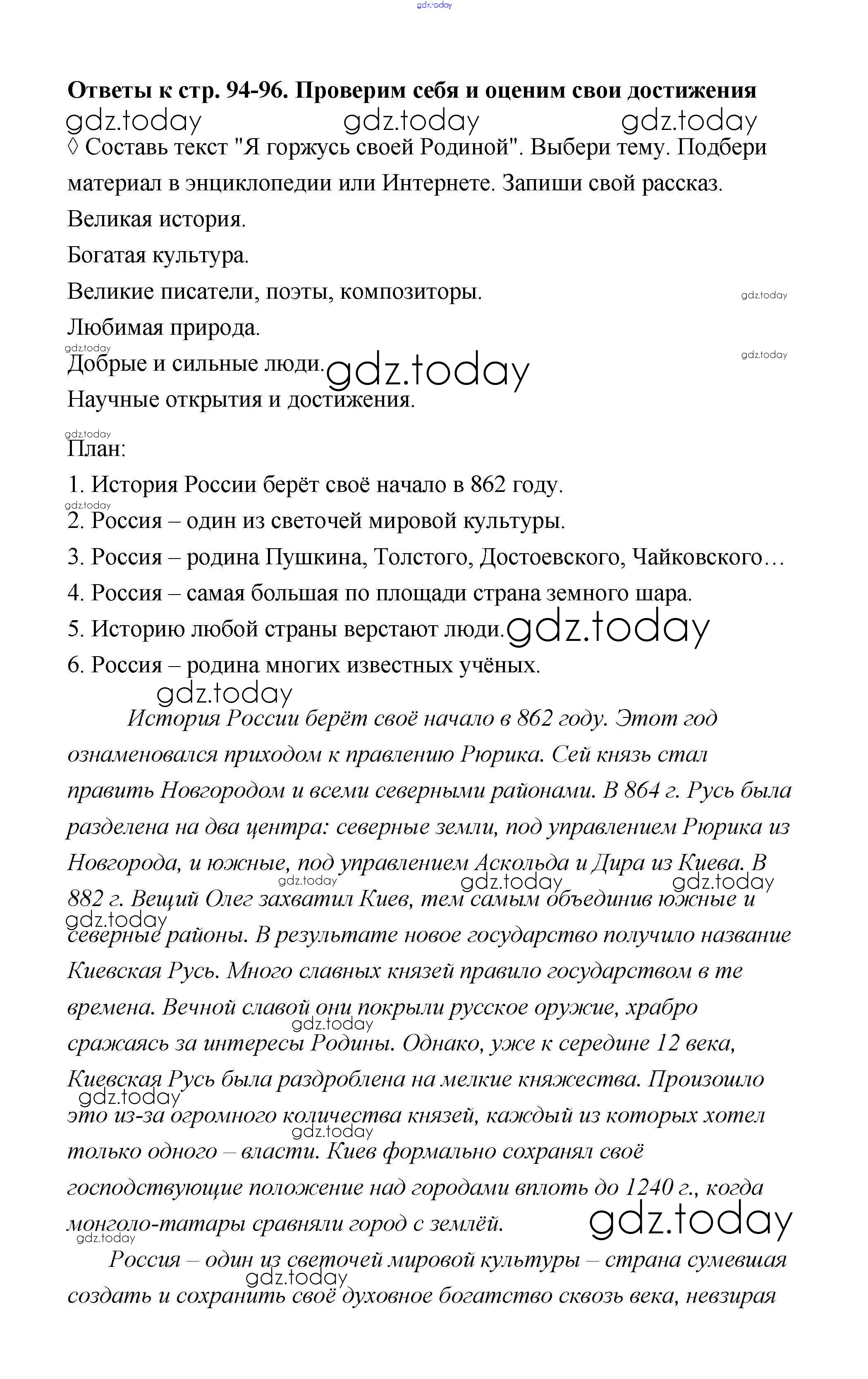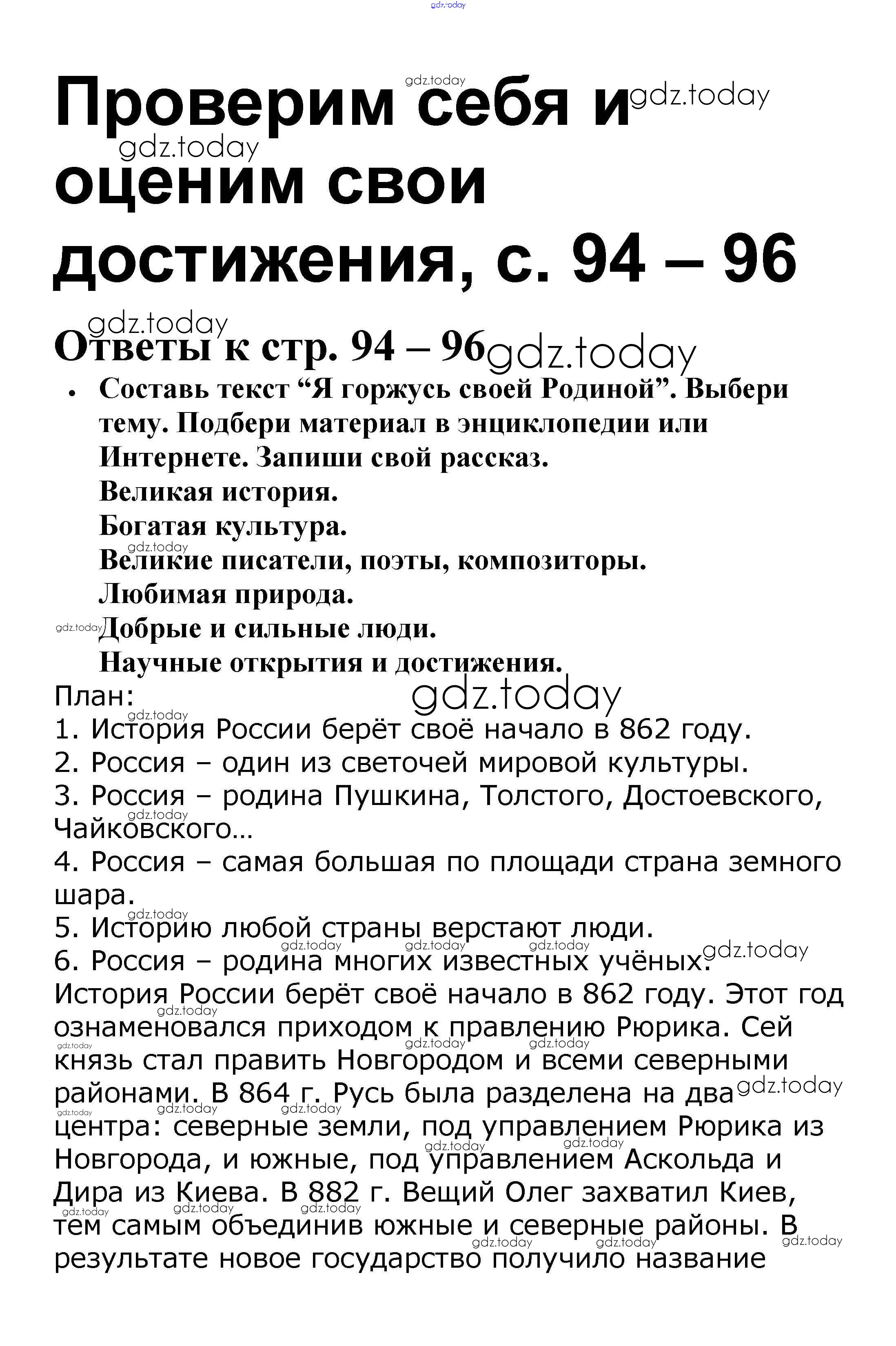 На страницах сайта gdz.today вы найдете учебный и вспомогательный материал, направленный на улучшения знаний школьной программы. ГДЗ - онлайн мир знаний Решение к страницам 94-96 Рабочей тетради по Литературному чтению для 4 класса Бойкина, Виноградская Просвещение Школа России 2016