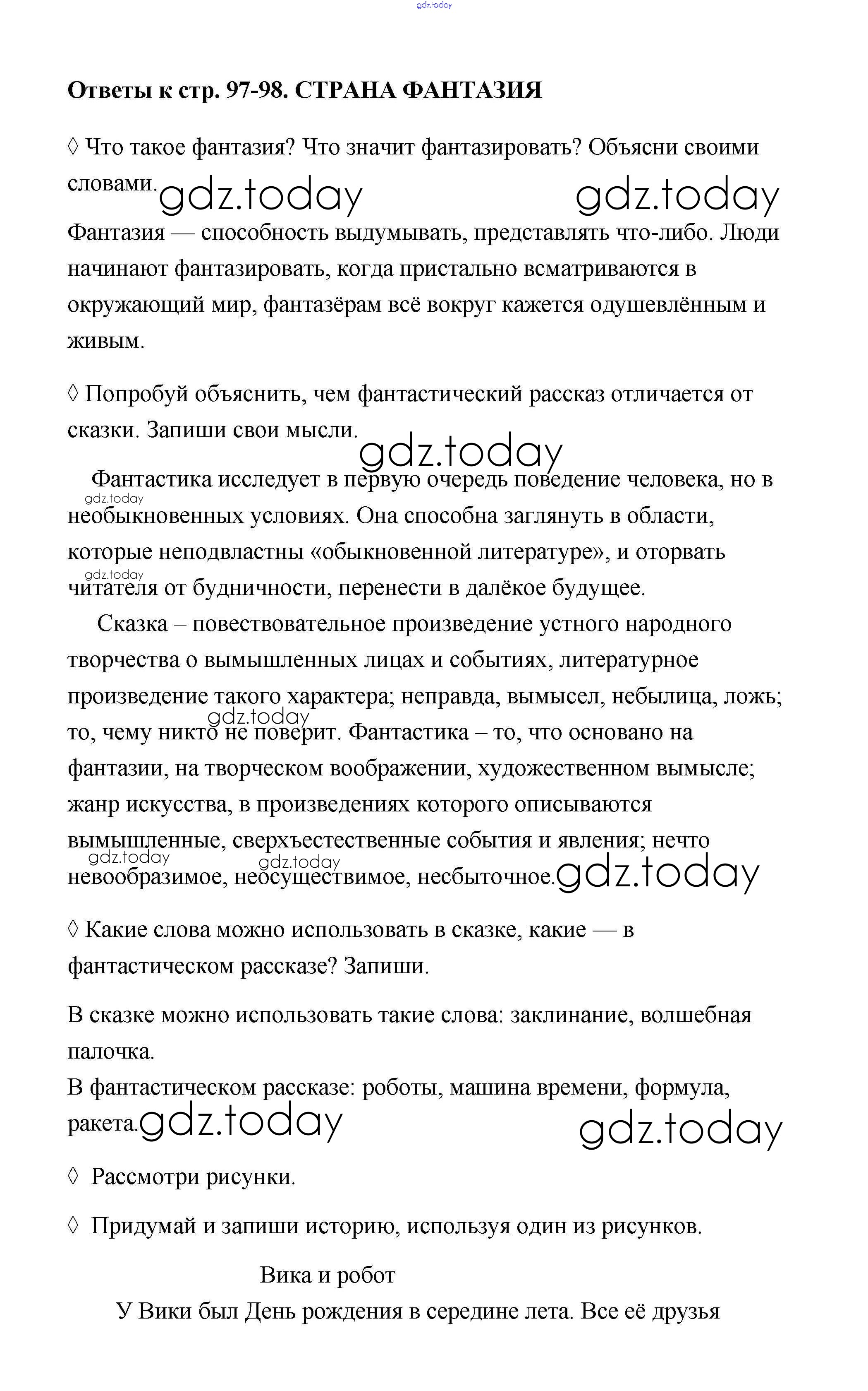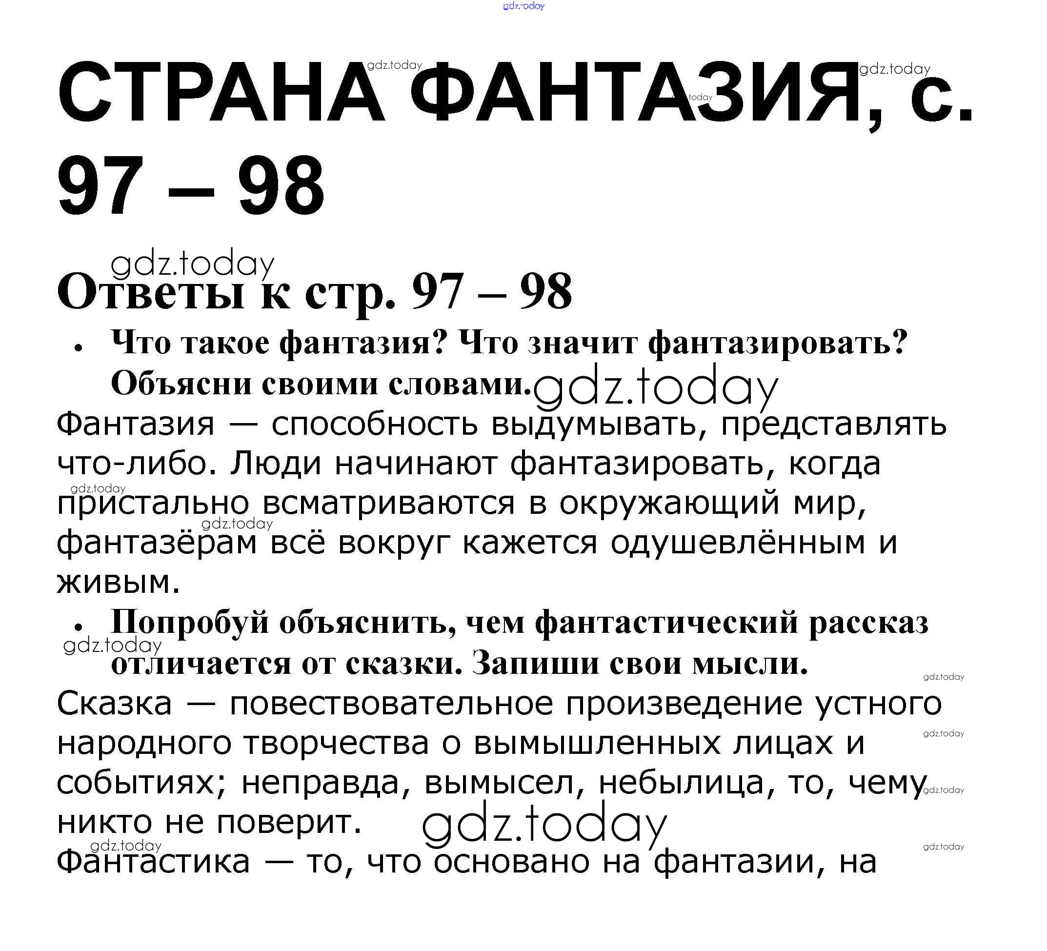 На страницах сайта gdz.today вы найдете учебный и вспомогательный материал, направленный на улучшения знаний школьной программы. ГДЗ - онлайн мир знаний Решение к страницам 97-98 Рабочей тетради по Литературному чтению для 4 класса Бойкина, Виноградская Просвещение Школа России 2016