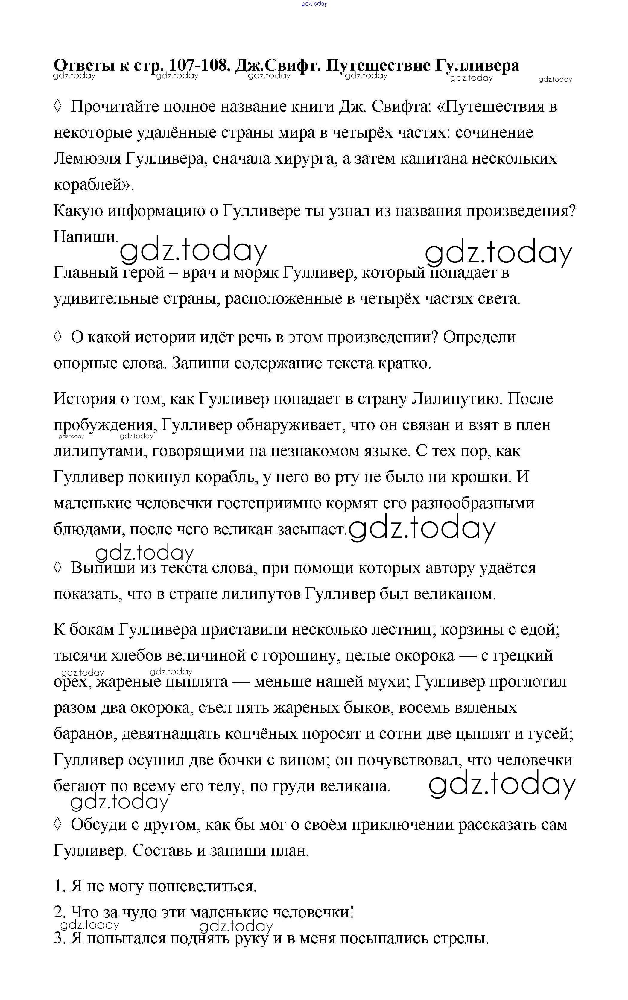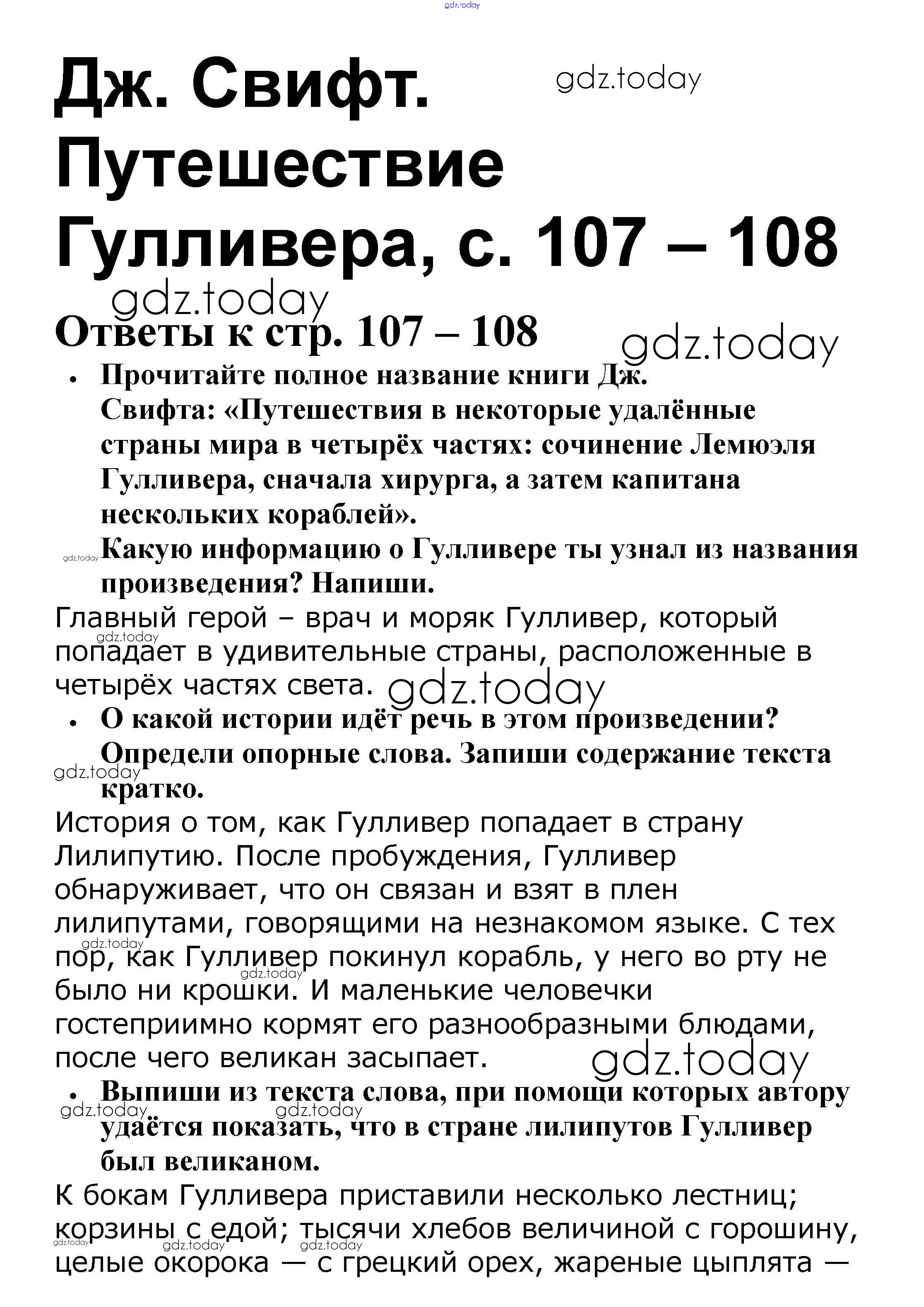 На страницах сайта gdz.today вы найдете учебный и вспомогательный материал, направленный на улучшения знаний школьной программы. ГДЗ - онлайн мир знаний Решение к страницам 107-108 Рабочей тетради по Литературному чтению для 4 класса Бойкина, Виноградская Просвещение Школа России 2016