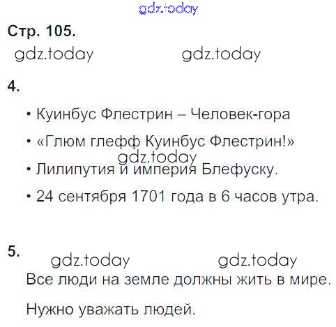 На страницах сайта gdz.today вы найдете учебный и вспомогательный материал, направленный на улучшения знаний школьной программы. ГДЗ - онлайн мир знаний Решение к части 1. Страницы 105 Рабочей тетради по Литературному чтению для 4 класса Ефросинина Вентана-граф Начальная школа XXI века 2020