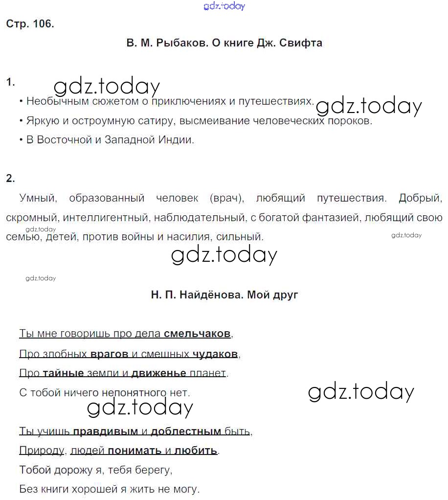 На страницах сайта gdz.today вы найдете учебный и вспомогательный материал, направленный на улучшения знаний школьной программы. ГДЗ - онлайн мир знаний Решение к части 1. Страницы 106 Рабочей тетради по Литературному чтению для 4 класса Ефросинина Вентана-граф Начальная школа XXI века 2020