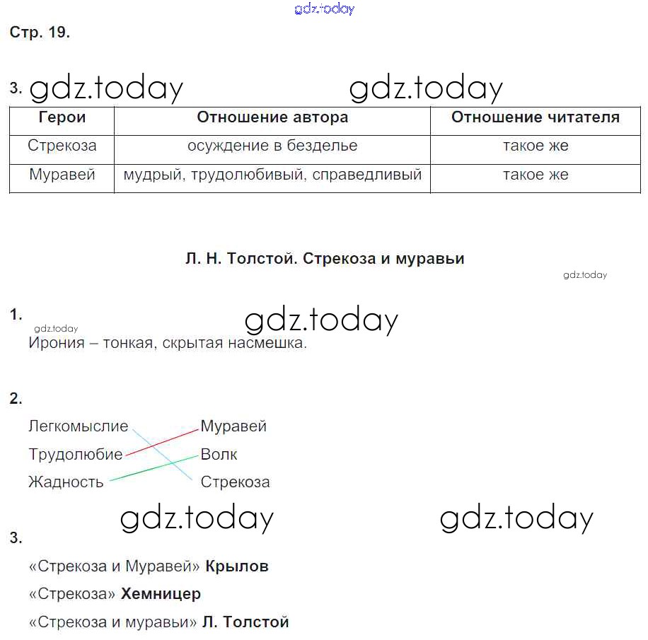 На страницах сайта gdz.today вы найдете учебный и вспомогательный материал, направленный на улучшения знаний школьной программы. ГДЗ - онлайн мир знаний Решение к части 1. Страницы 19 Рабочей тетради по Литературному чтению для 4 класса Ефросинина Вентана-граф Начальная школа XXI века 2020