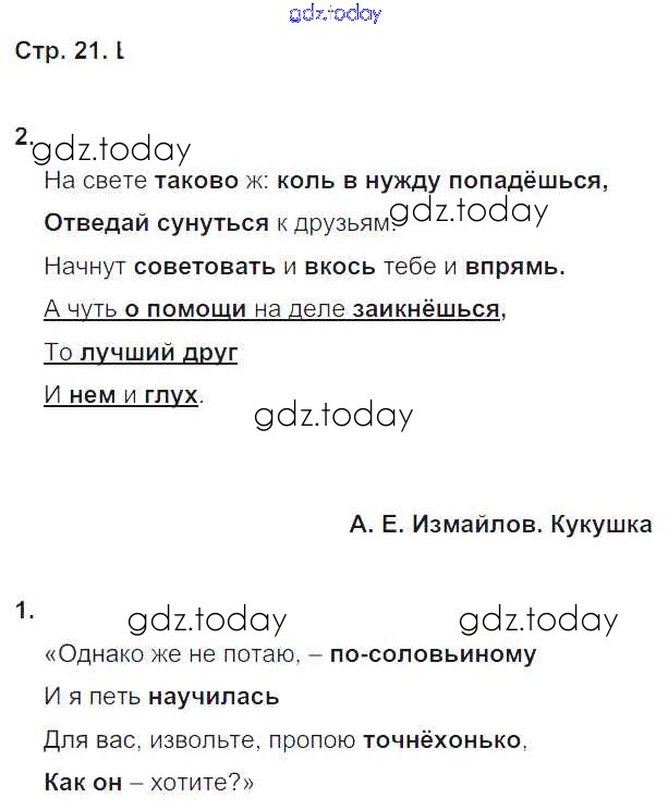 На страницах сайта gdz.today вы найдете учебный и вспомогательный материал, направленный на улучшения знаний школьной программы. ГДЗ - онлайн мир знаний Решение к части 1. Страницы 21 Рабочей тетради по Литературному чтению для 4 класса Ефросинина Вентана-граф Начальная школа XXI века 2020