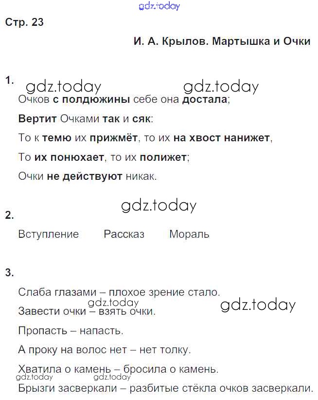 На страницах сайта gdz.today вы найдете учебный и вспомогательный материал, направленный на улучшения знаний школьной программы. ГДЗ - онлайн мир знаний Решение к части 1. Страницы 23 Рабочей тетради по Литературному чтению для 4 класса Ефросинина Вентана-граф Начальная школа XXI века 2020