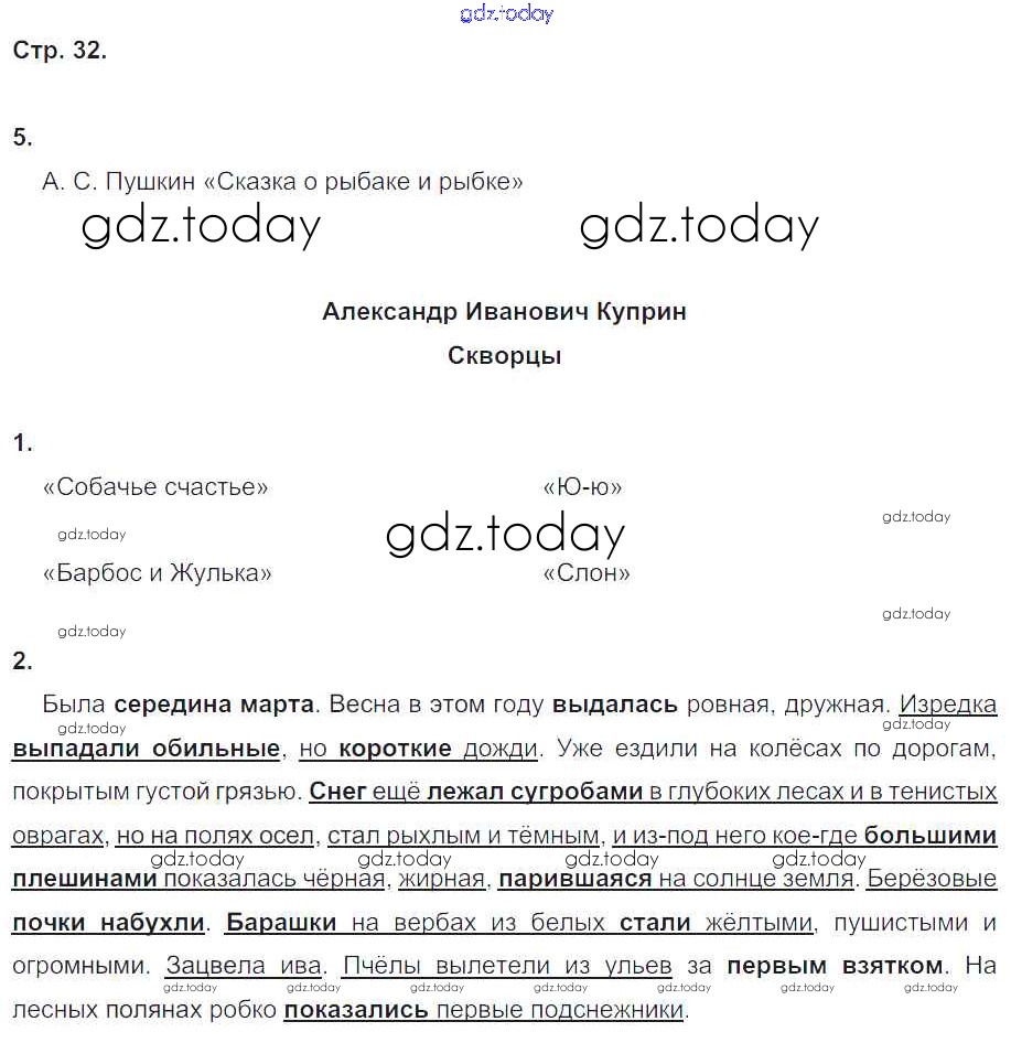 На страницах сайта gdz.today вы найдете учебный и вспомогательный материал, направленный на улучшения знаний школьной программы. ГДЗ - онлайн мир знаний Решение к части 2. Страницы 32 Рабочей тетради по Литературному чтению для 4 класса Ефросинина Вентана-граф Начальная школа XXI века 2020