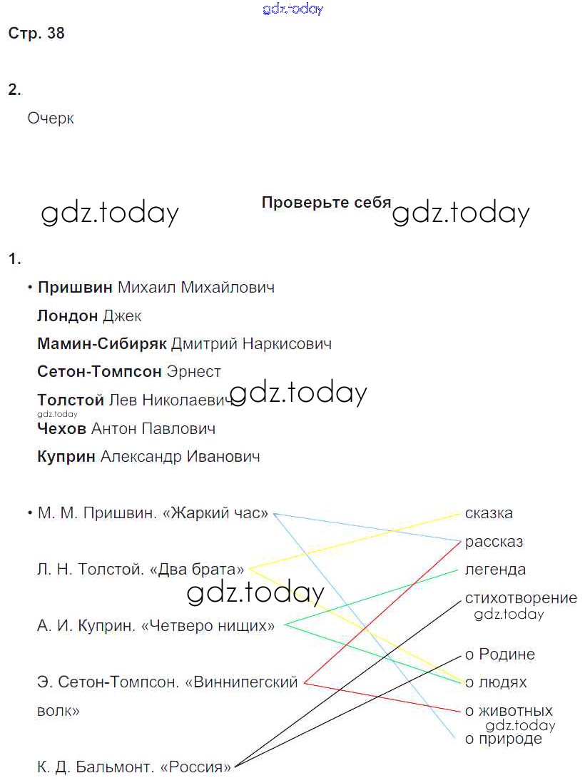 На страницах сайта gdz.today вы найдете учебный и вспомогательный материал, направленный на улучшения знаний школьной программы. ГДЗ - онлайн мир знаний Решение к части 2. Страницы 38 Рабочей тетради по Литературному чтению для 4 класса Ефросинина Вентана-граф Начальная школа XXI века 2020