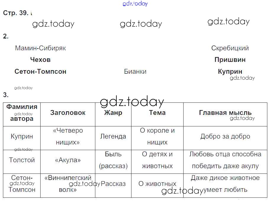 На страницах сайта gdz.today вы найдете учебный и вспомогательный материал, направленный на улучшения знаний школьной программы. ГДЗ - онлайн мир знаний Решение к части 2. Страницы 39 Рабочей тетради по Литературному чтению для 4 класса Ефросинина Вентана-граф Начальная школа XXI века 2020