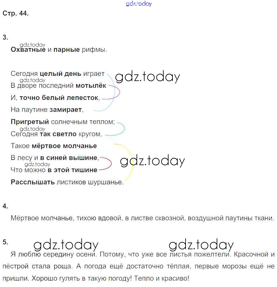На страницах сайта gdz.today вы найдете учебный и вспомогательный материал, направленный на улучшения знаний школьной программы. ГДЗ - онлайн мир знаний Решение к части 2. Страницы 44 Рабочей тетради по Литературному чтению для 4 класса Ефросинина Вентана-граф Начальная школа XXI века 2020