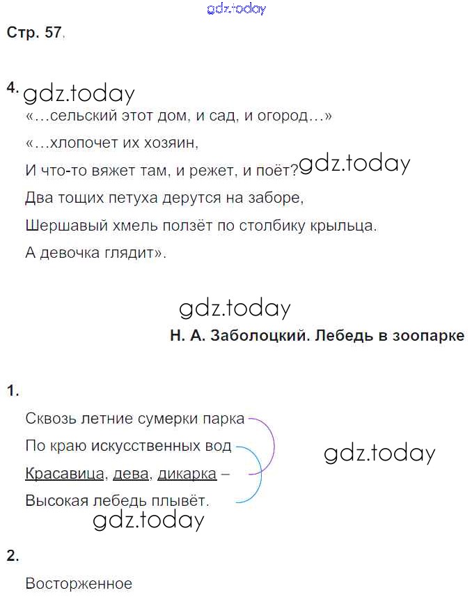 На страницах сайта gdz.today вы найдете учебный и вспомогательный материал, направленный на улучшения знаний школьной программы. ГДЗ - онлайн мир знаний Решение к части 2. Страницы 57 Рабочей тетради по Литературному чтению для 4 класса Ефросинина Вентана-граф Начальная школа XXI века 2020
