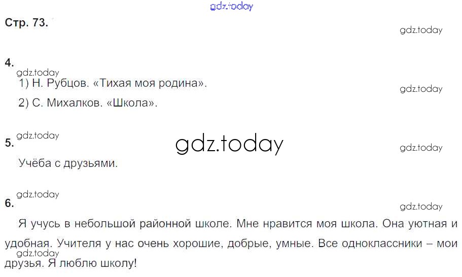 На страницах сайта gdz.today вы найдете учебный и вспомогательный материал, направленный на улучшения знаний школьной программы. ГДЗ - онлайн мир знаний Решение к части 2. Страницы 73 Рабочей тетради по Литературному чтению для 4 класса Ефросинина Вентана-граф Начальная школа XXI века 2020