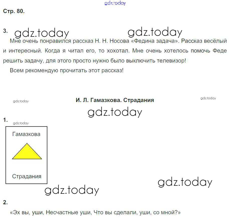 На страницах сайта gdz.today вы найдете учебный и вспомогательный материал, направленный на улучшения знаний школьной программы. ГДЗ - онлайн мир знаний Решение к части 2. Страницы 80 Рабочей тетради по Литературному чтению для 4 класса Ефросинина Вентана-граф Начальная школа XXI века 2020