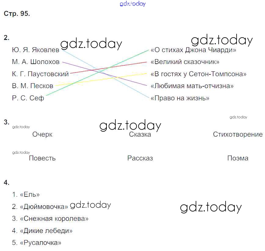 На страницах сайта gdz.today вы найдете учебный и вспомогательный материал, направленный на улучшения знаний школьной программы. ГДЗ - онлайн мир знаний Решение к части 2. Страницы 95 Рабочей тетради по Литературному чтению для 4 класса Ефросинина Вентана-граф Начальная школа XXI века 2020