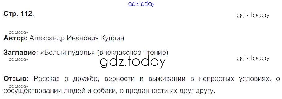 На страницах сайта gdz.today вы найдете учебный и вспомогательный материал, направленный на улучшения знаний школьной программы. ГДЗ - онлайн мир знаний Решение к части 1. Страницы тетради 112 Рабочей тетради по Литературному чтению для 4 класса Кубасова Ассоциация 21 век Гармония 2019