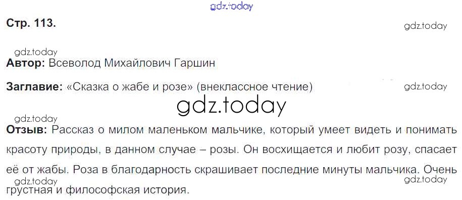 На страницах сайта gdz.today вы найдете учебный и вспомогательный материал, направленный на улучшения знаний школьной программы. ГДЗ - онлайн мир знаний Решение к части 1. Страницы тетради 113 Рабочей тетради по Литературному чтению для 4 класса Кубасова Ассоциация 21 век Гармония 2019