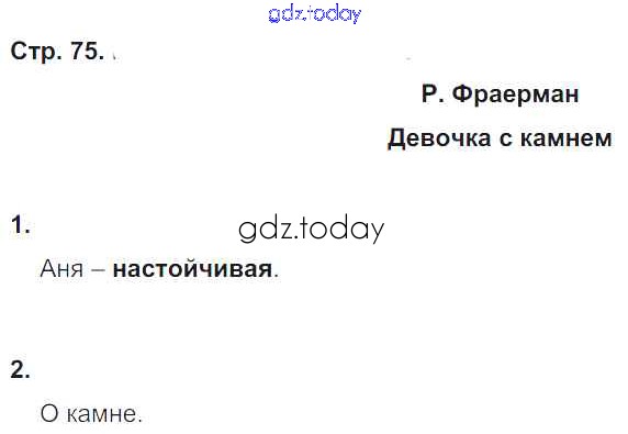 На страницах сайта gdz.today вы найдете учебный и вспомогательный материал, направленный на улучшения знаний школьной программы. ГДЗ - онлайн мир знаний Решение к части 1. Страницы тетради 75 Рабочей тетради по Литературному чтению для 4 класса Кубасова Ассоциация 21 век Гармония 2019