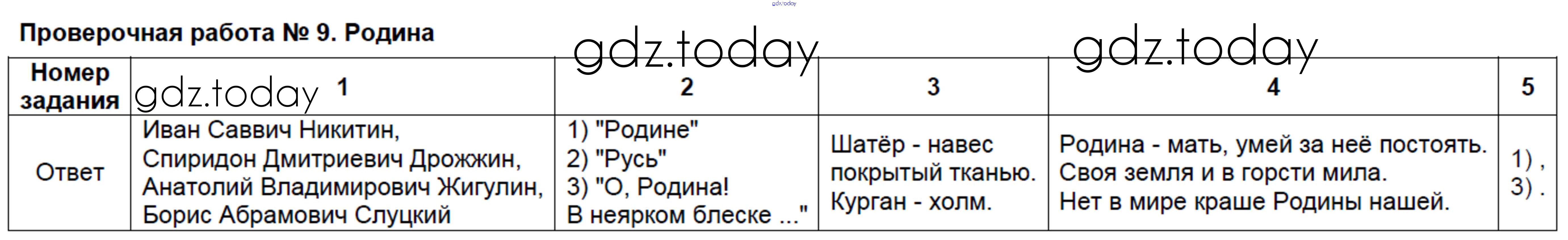 На страницах сайта gdz.today вы найдете учебный и вспомогательный материал, направленный на улучшения знаний школьной программы. ГДЗ - онлайн мир знаний Решение к проверочным работам ПР-9. Родина Контрольно-измерительным материалам (КИМ) по Литературному чтению для 4 класса Шубина Экзамен 2014