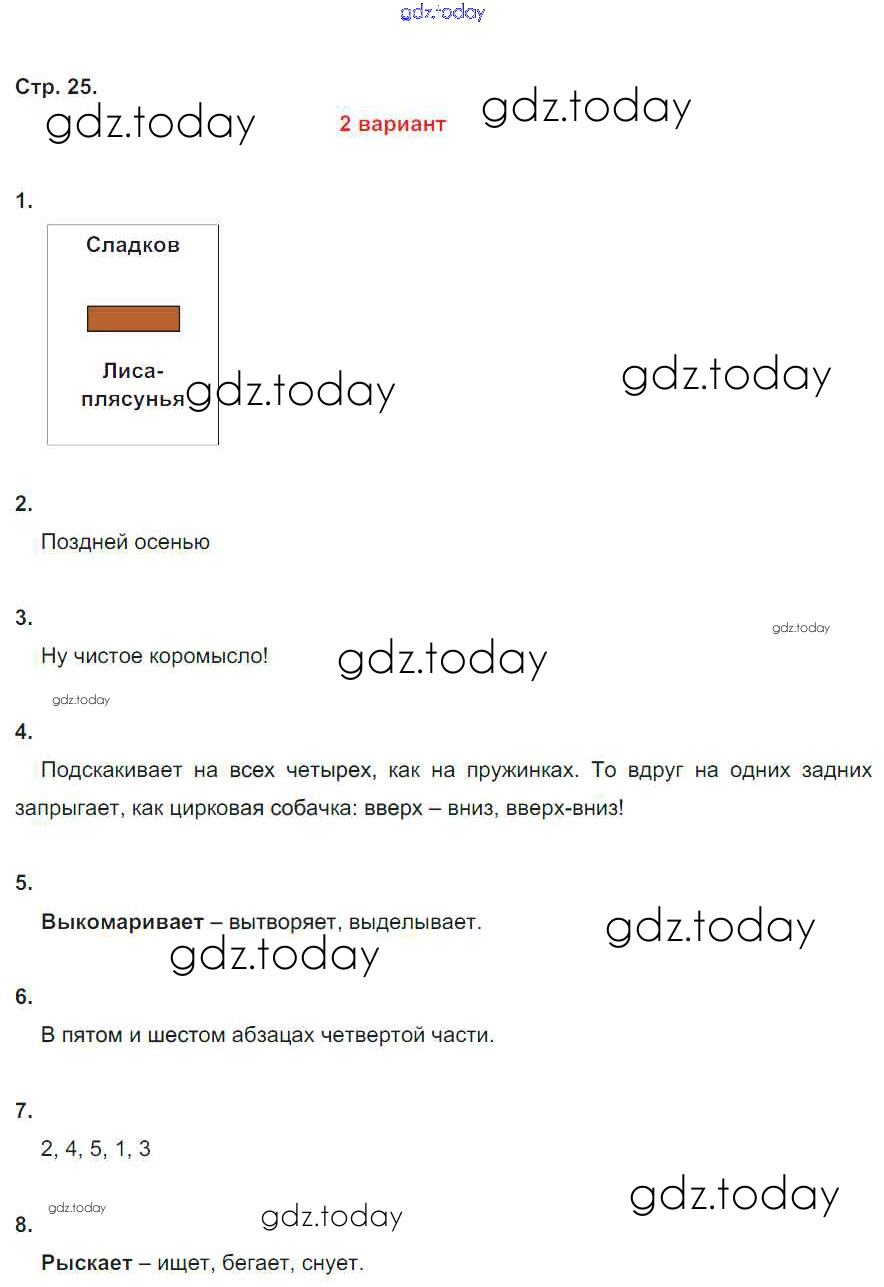 Ответы к Решение к части 1. Страницы тетради 25 Тетради для контрольных работ по Литературному чтению для 4 класса Ефросинина Вентана-граф УМК 2019