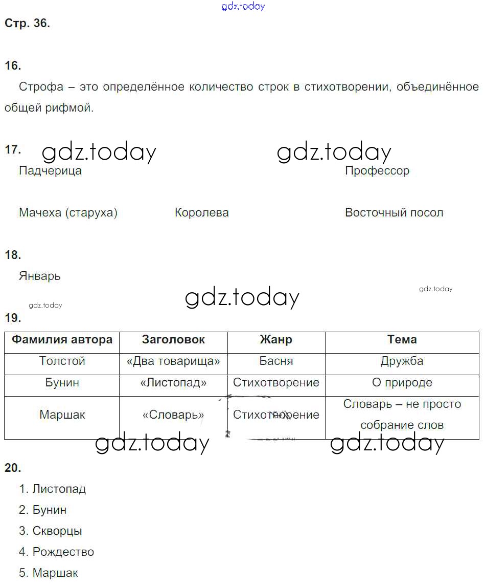 На страницах сайта gdz.today вы найдете учебный и вспомогательный материал, направленный на улучшения знаний школьной программы. ГДЗ - онлайн мир знаний Решение к части 1. Страницы тетради 36 Тетради для контрольных работ по Литературному чтению для 4 класса Ефросинина Вентана-граф УМК 2019