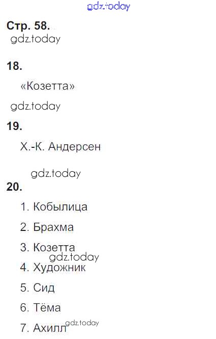 На страницах сайта gdz.today вы найдете учебный и вспомогательный материал, направленный на улучшения знаний школьной программы. ГДЗ - онлайн мир знаний Решение к части 1. Страницы тетради 58 Тетради для контрольных работ по Литературному чтению для 4 класса Ефросинина Вентана-граф УМК 2019