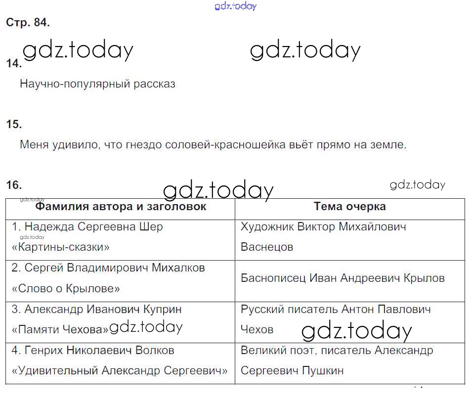 На страницах сайта gdz.today вы найдете учебный и вспомогательный материал, направленный на улучшения знаний школьной программы. ГДЗ - онлайн мир знаний Решение к части 1. Страницы тетради 84 Тетради для контрольных работ по Литературному чтению для 4 класса Ефросинина Вентана-граф УМК 2019