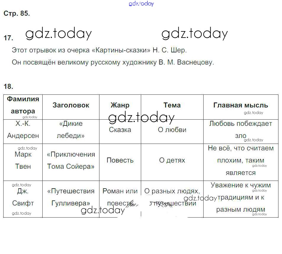 На страницах сайта gdz.today вы найдете учебный и вспомогательный материал, направленный на улучшения знаний школьной программы. ГДЗ - онлайн мир знаний Решение к части 1. Страницы тетради 85 Тетради для контрольных работ по Литературному чтению для 4 класса Ефросинина Вентана-граф УМК 2019