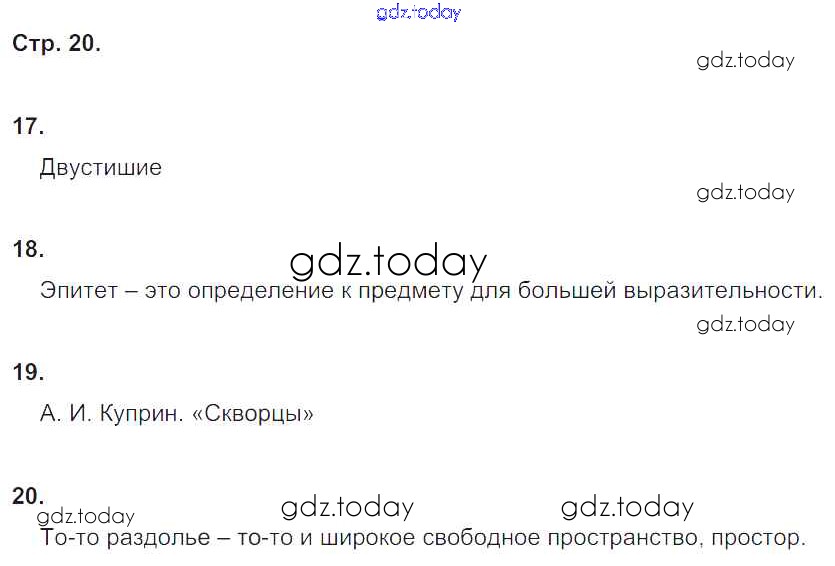 На страницах сайта gdz.today вы найдете учебный и вспомогательный материал, направленный на улучшения знаний школьной программы. ГДЗ - онлайн мир знаний Решение к части 2. Страницы тетради 20 Тетради для контрольных работ по Литературному чтению для 4 класса Ефросинина Вентана-граф УМК 2019