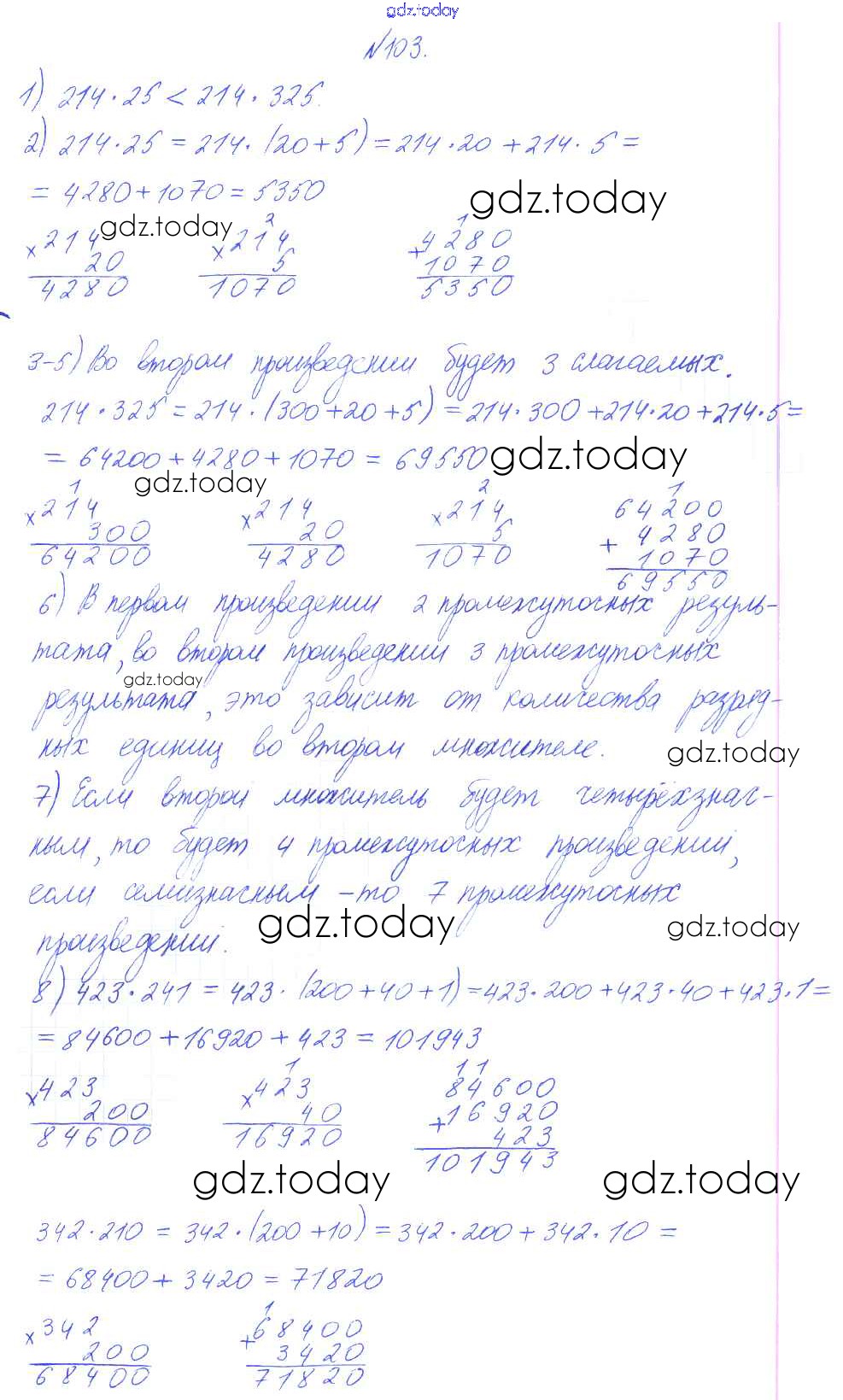 Ответы к Решение к упражнениям 103 Учебнику по Математике для 4 класса Аргинская, Ивановская Фёдоров УМК 2014
